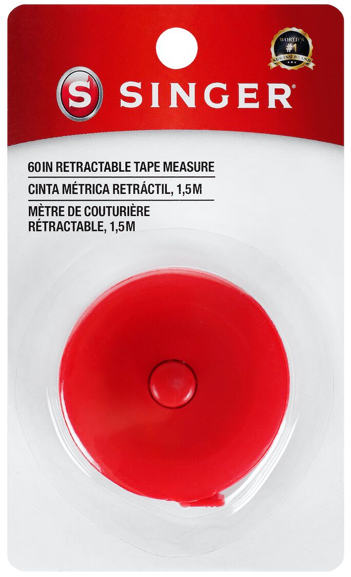 The Singer Retractable Tape Measure makes for a lovely and useful addition to a notion or sewing supply kit. This pack contains a 60-inch flexible measuring tape that displays measurements in both inches and centimeters for convenience and easy conversion. It comes in a bright red case and retracts with just a click of a button.