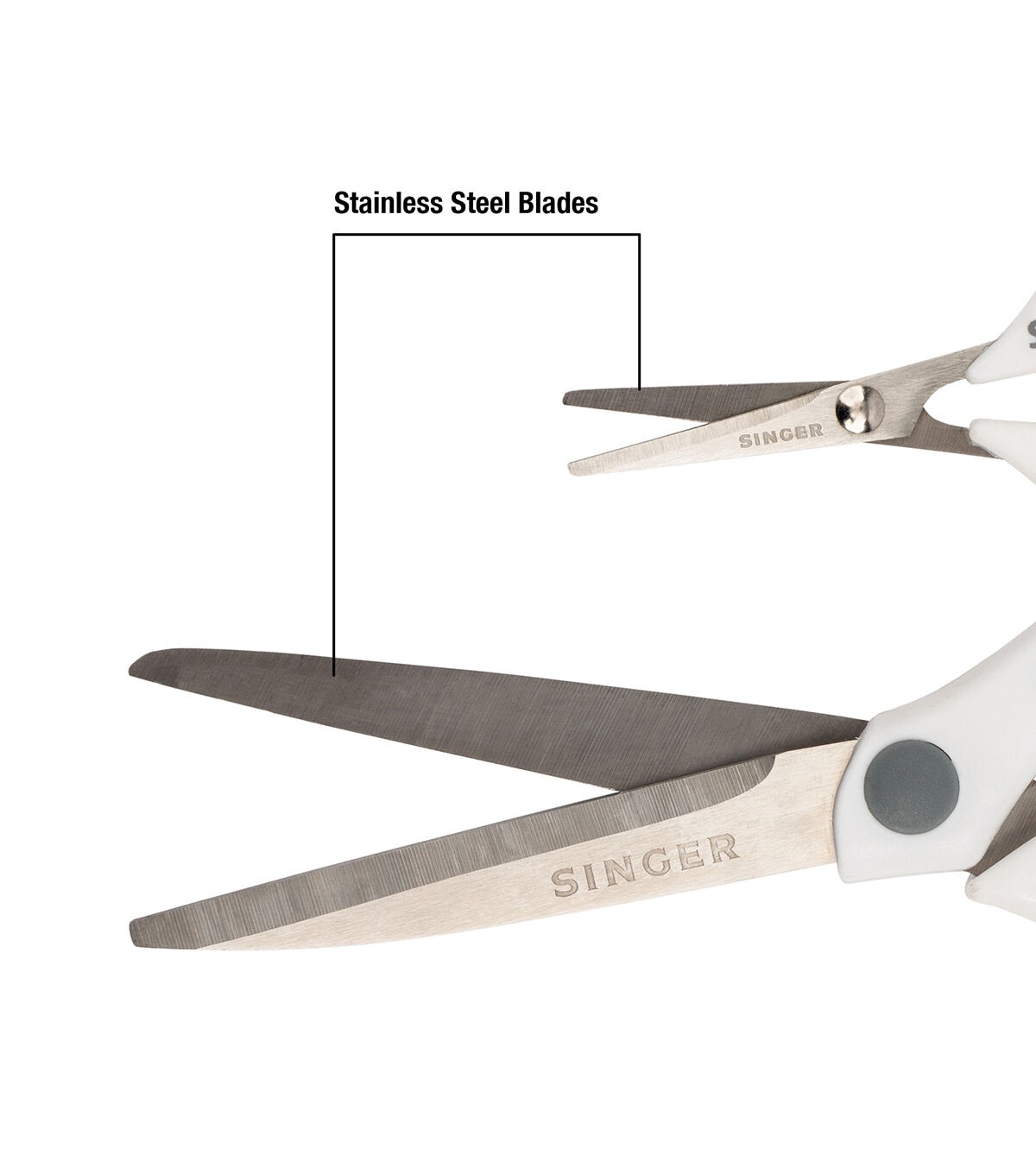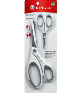 The SINGER 8.5-Inch Fabric Scissors are professional dressmaker’s shears designed to cut easily and cleanly through any fabric. The SINGER 4-inch Mini Detail Craft Scissors are high-quality craft scissors designed for any precision cutting project from embroidery and applique work to scrapbooking and crafting. The professional grade precision blades on both of these scissors are made from durable stainless steel for long-lasting sharpness and are resistant against rust, nicks, and scratches. The comfort grip handles are designed to be comfortably used by both right- and left-handed users, and they feature added ribs for a more secure grip. The handles are made from strong yet lightweight thermoplastic rubber (TPR). The tongue-in-cheek messages printed on the handles – “Fabric ONLY” on the shears and “Snip” on the craft scissors – help those household members who are not tailors or seamstresses to avoid mistaking one for the other. Use both scissors only on what they are designed to cut. Oil joints regularly and keep scissors clean and moisture free for best results.