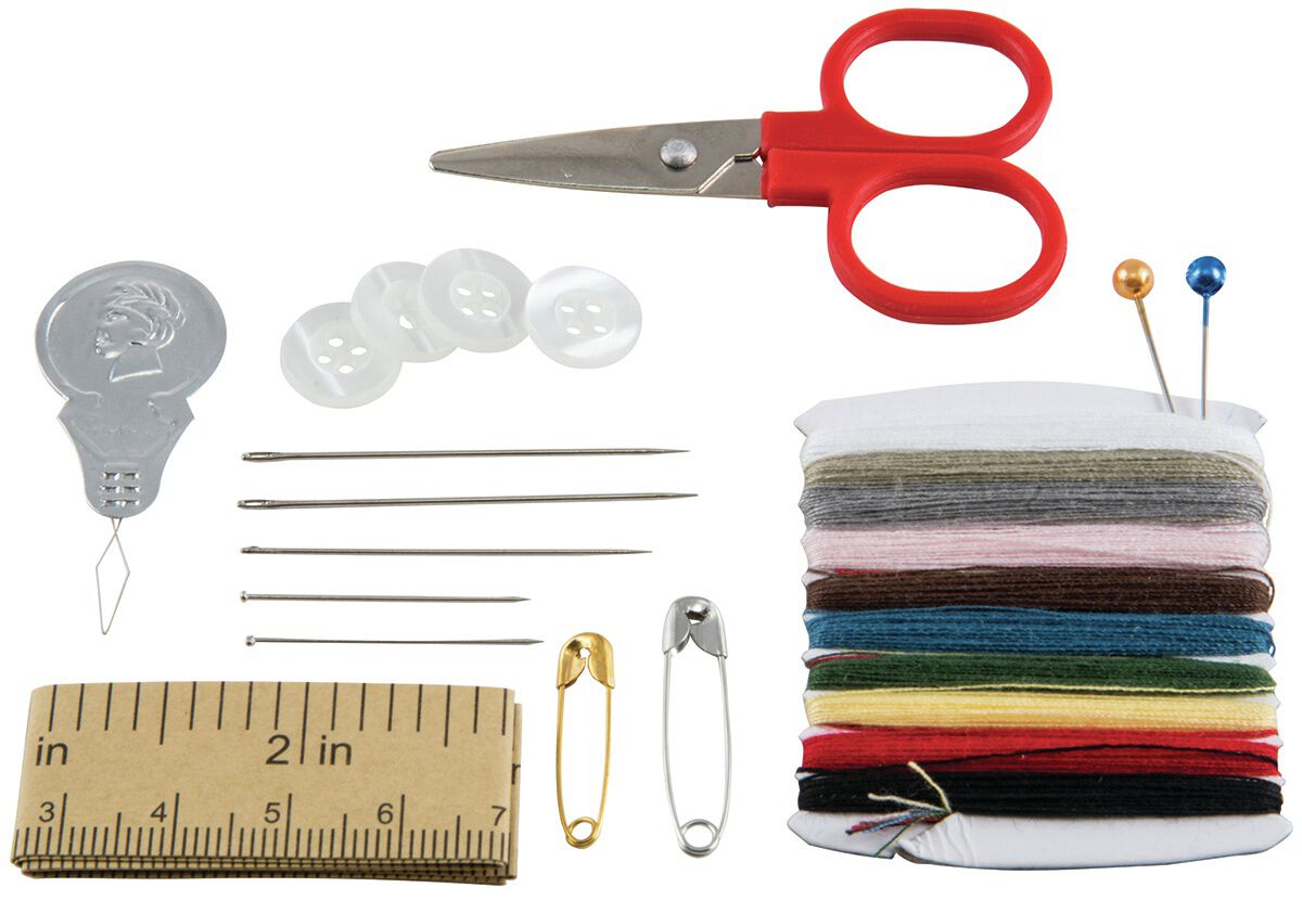 The Singer Travel Sewing Kit contains all the basics for sewer and non-sewers alike. This kit comes in a clear plastic pouch with a snap closure and includes 10 spools of thread in assorted colors, a pair of scissors, a paper measuring tape, pins, hand needles, a needle threader, safety pins and buttons. It makes a perfect traveling companion. You can also gift it to a little one to encourage them to take up sewing as a hobby. These sewing essentials come in a clear pouch made of medium gauge vinyl and measure approximately 2 x 3 x 0.5 inches.