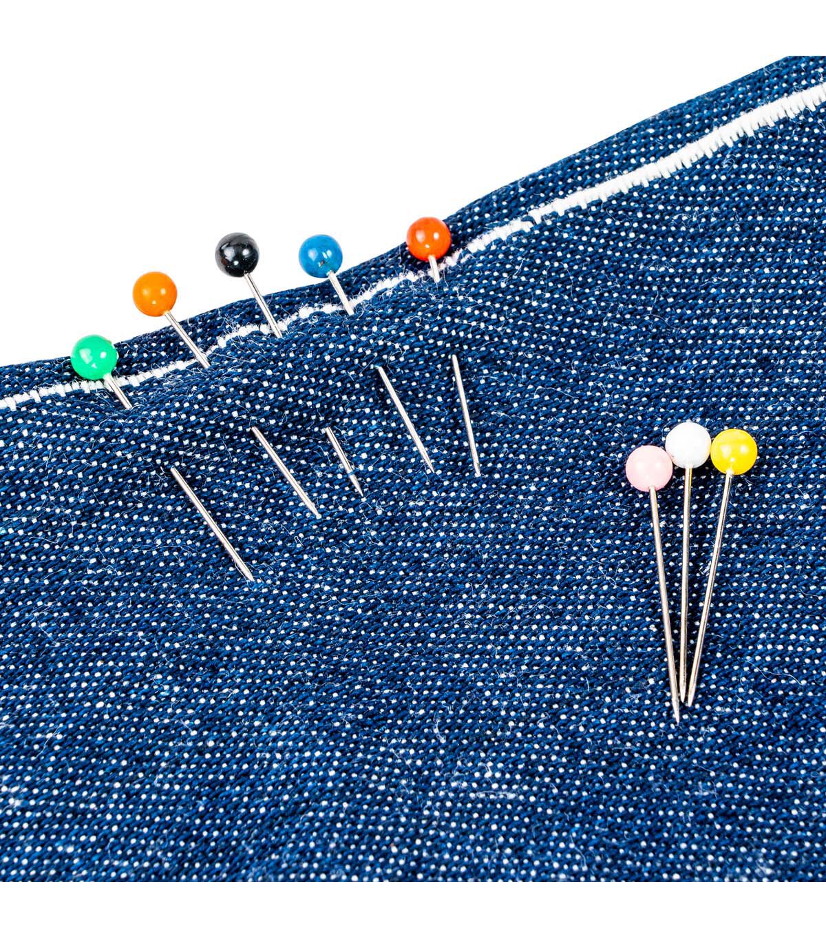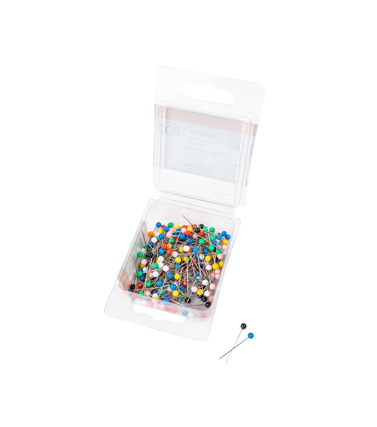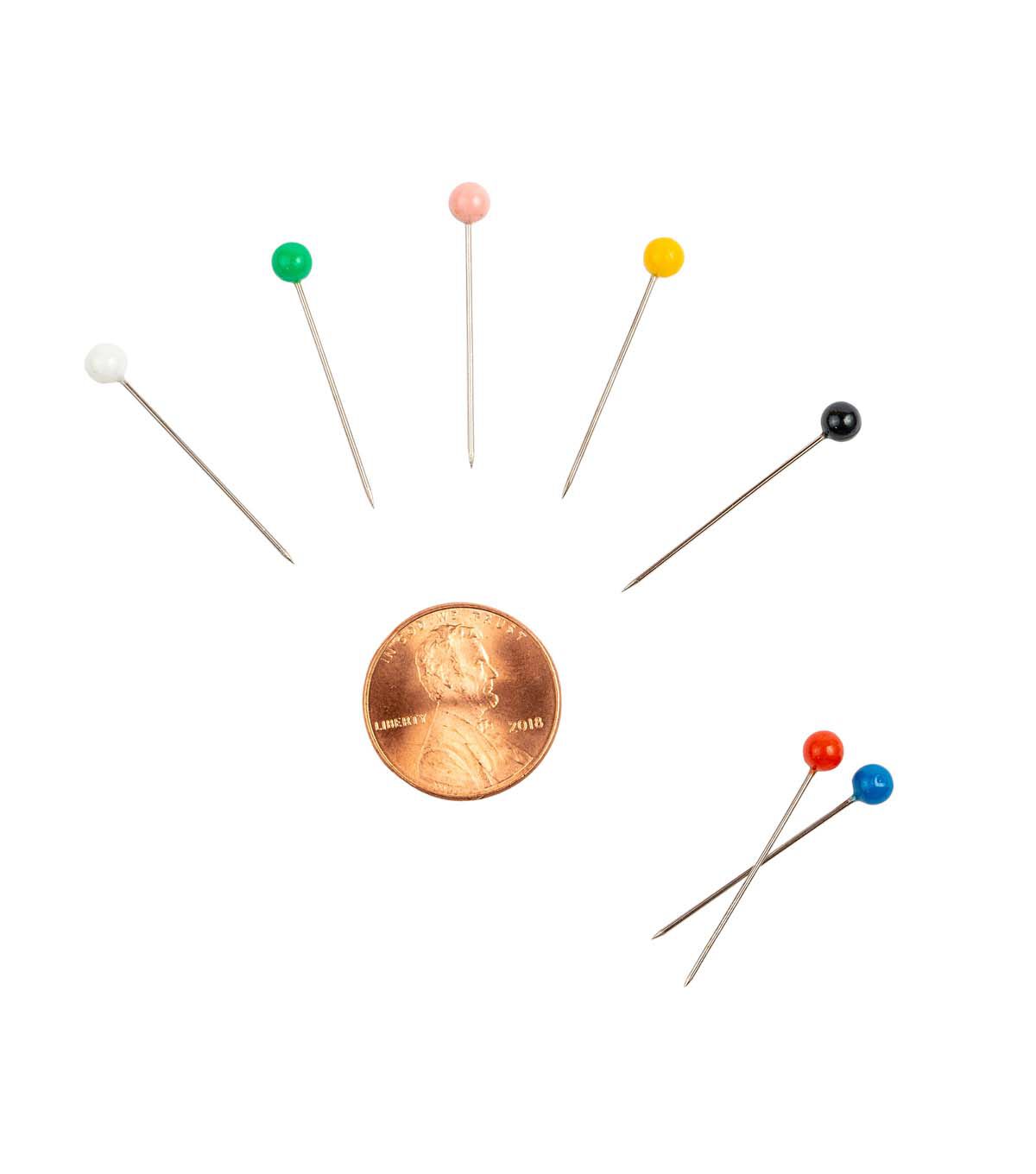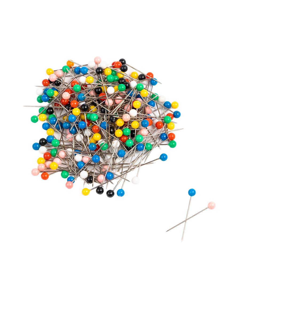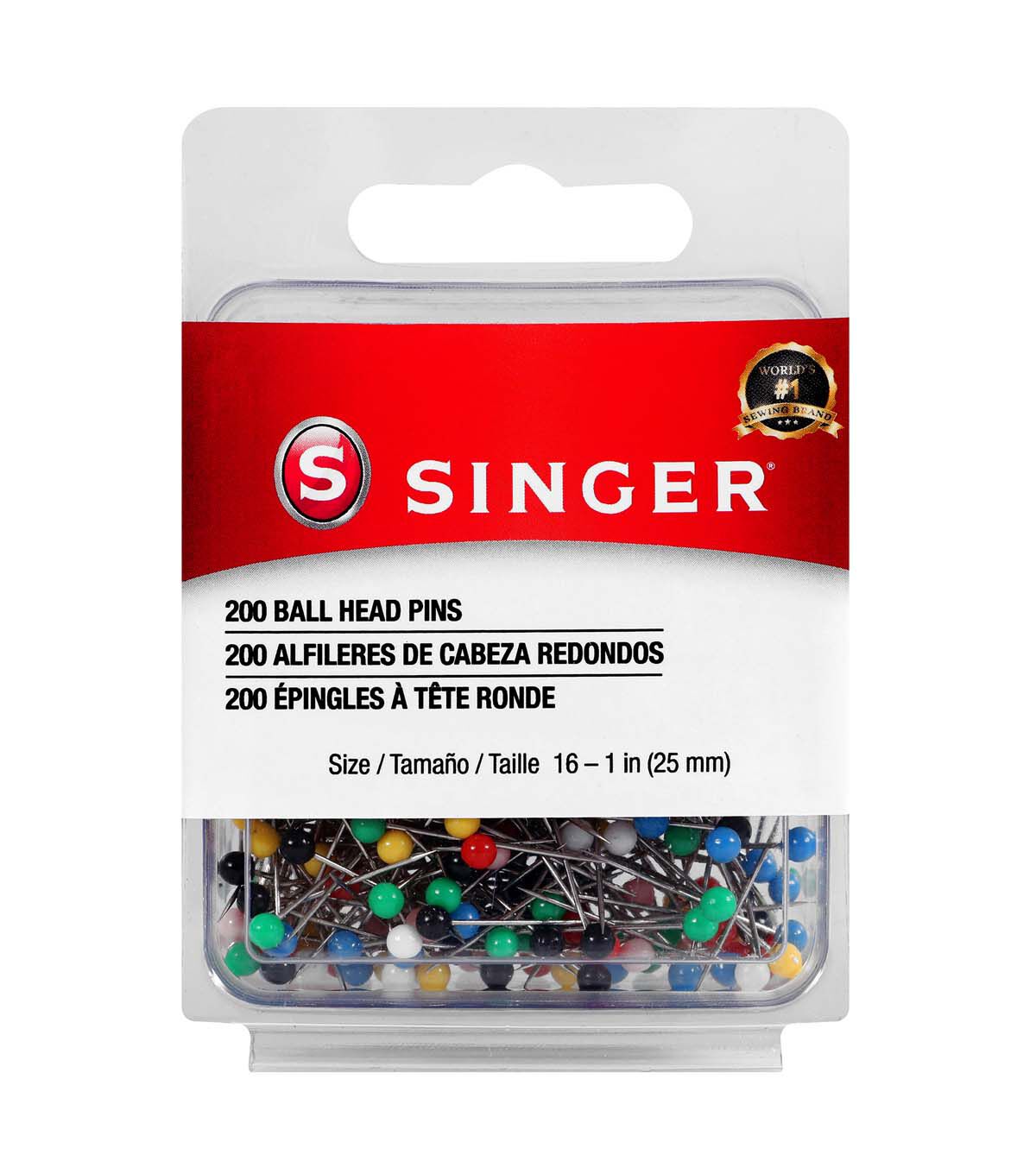 Upgrade your sewing kit with these SINGER Size 16 Steel Ball Head Straight Pins. This package includes 200 nickel-plated steel ball head pins that are perfect for holding fabric together prior to sewing. The colorful assorted pin heads, including yellow, purple, green, pink, and red, make them easy to see when using patterned fabric. These pins are made of nickel-plated steel for durability, rust prevention, and long-term use for a range of sewing, quilting, and crafting projects. Add a fun touch to your crafting aesthetics, or use them to make or decorate sewing or crafting projects.