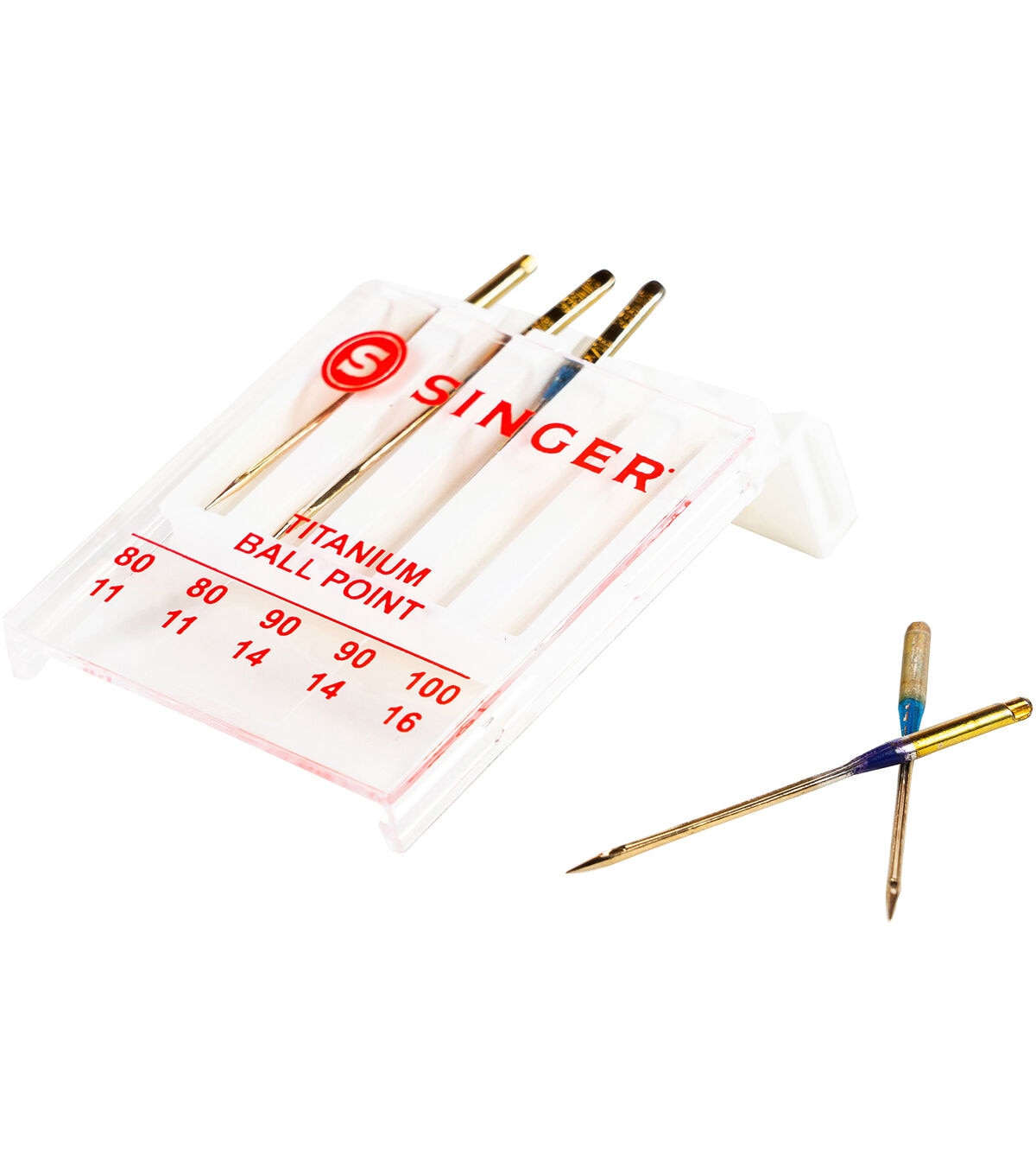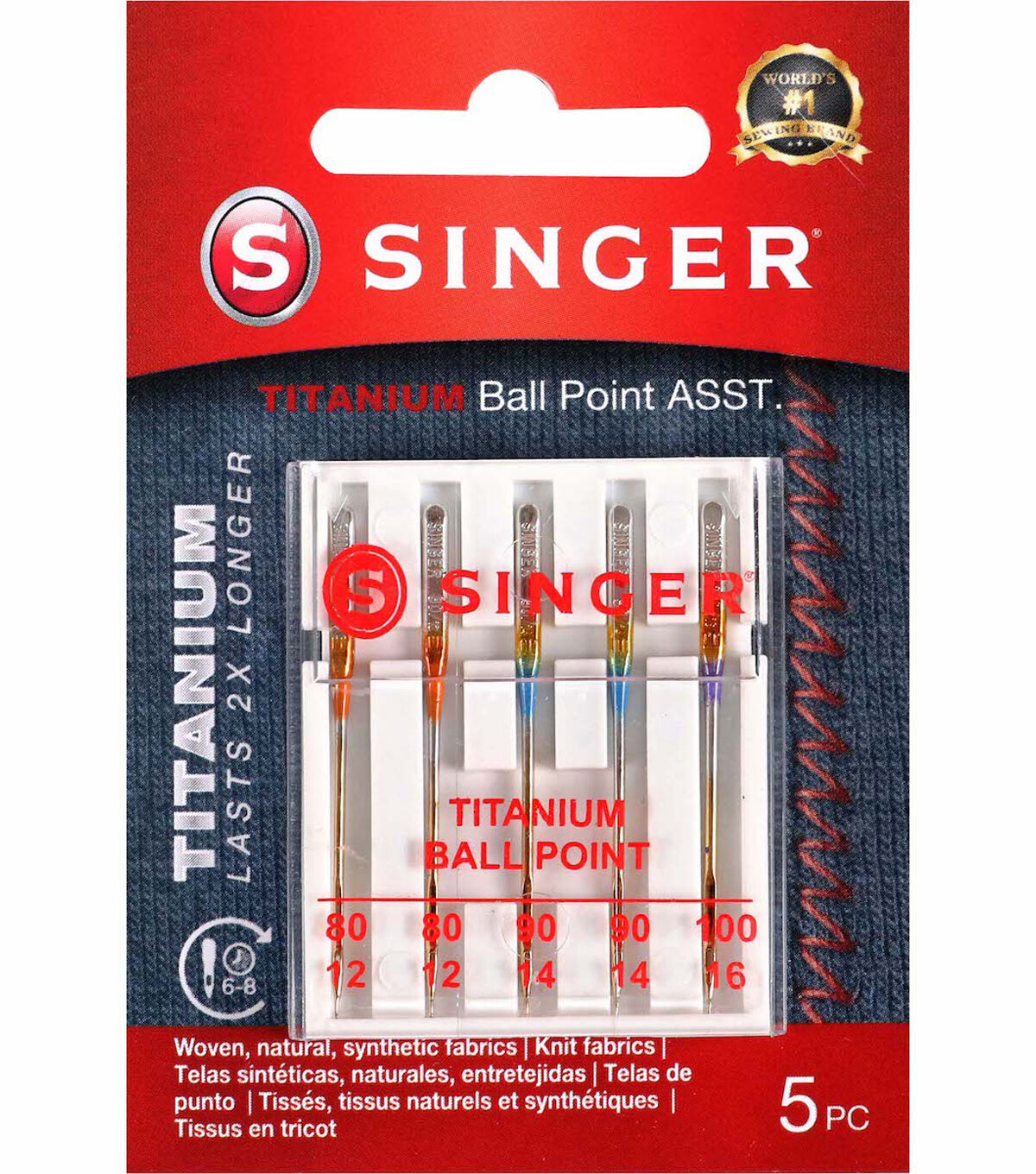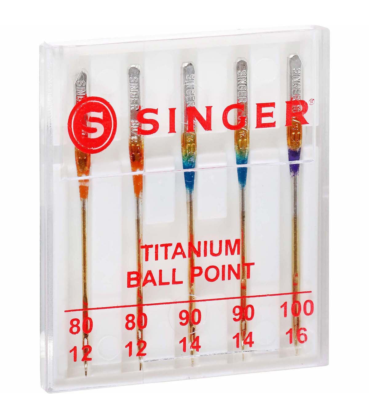 The Singer Titanium Assorted Universal Ball Point Machine Needles will come in handy when working on knit fabric projects. This pack includes two needles in size 80/11, two needles in size 90/14 and one needle in size 11/16. These needles are made of titanium, which helps avoid thread breakage even at high speeds. They are designed to fit Singer, Brother, Kenmore and other quality sewing machines. Each of these needles is color-coded for easy identification of the needle size.
