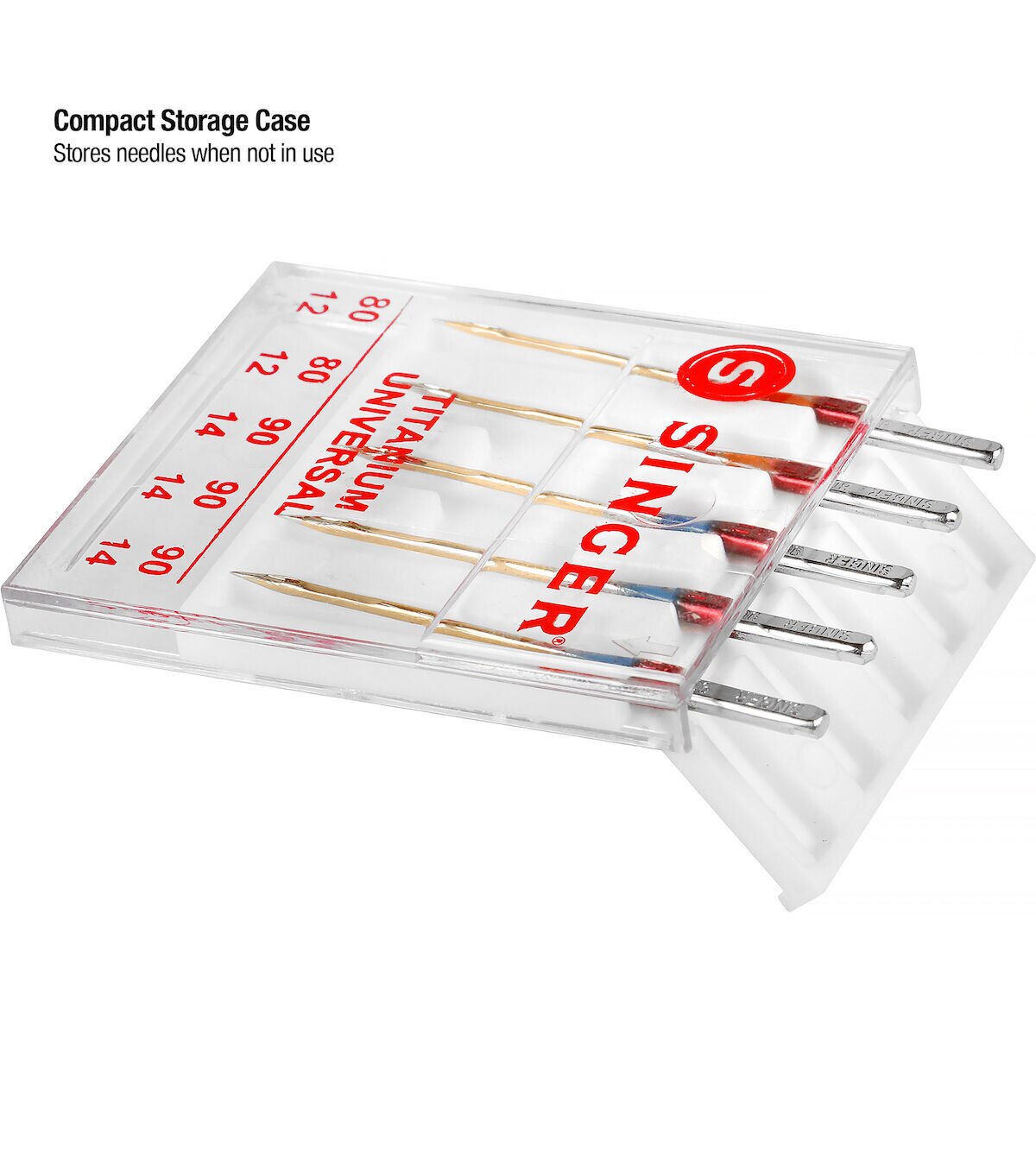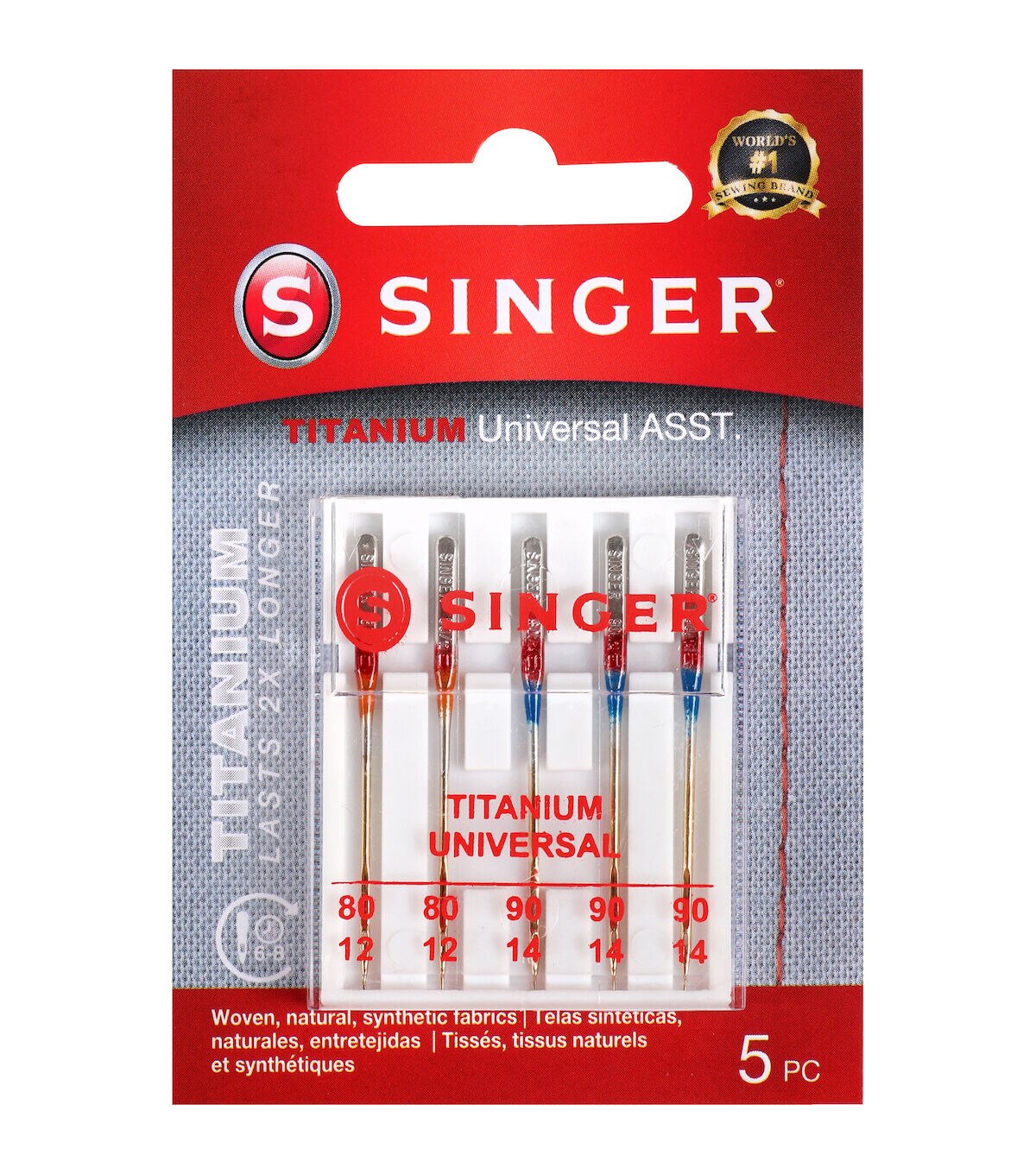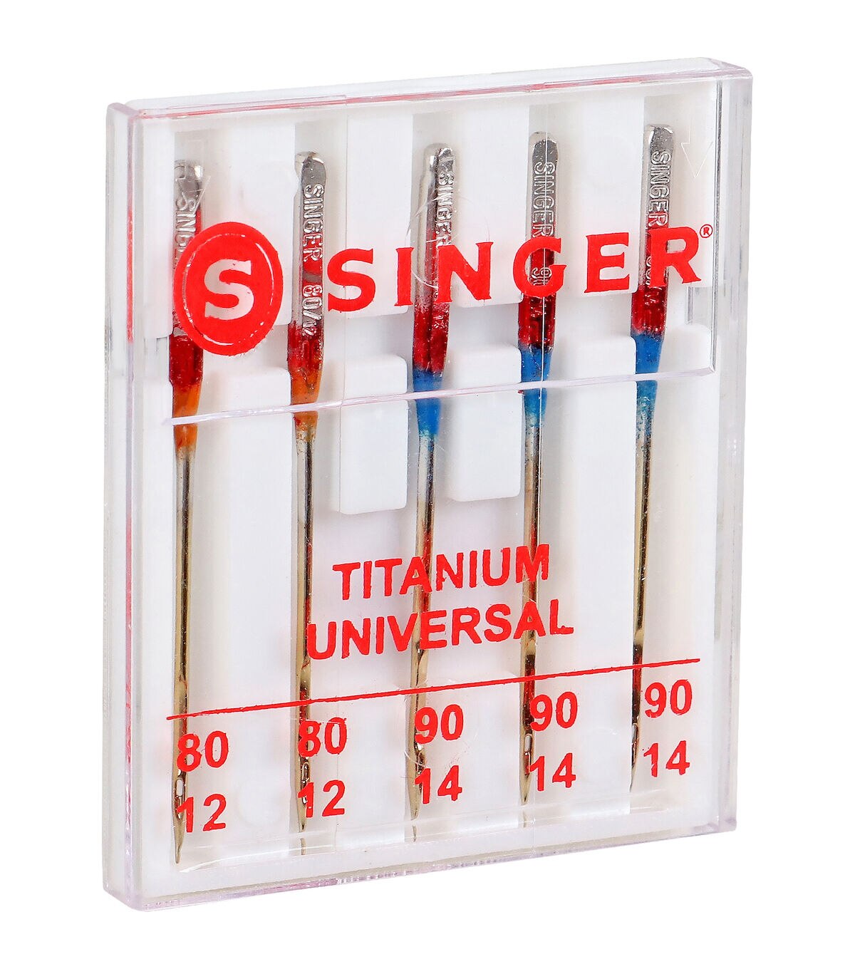The Singer Titanium Universal Regular Point Machine Needles are designed to fit most sewing machines and will come in handy while working on fabric projects. This pack includes two 80/11-sized needles and three 90/14-sized needles and will be a great addition to your sewing or craft kit. Made of titanium, these needles prevent thread breakage even at high speed. You can easily identify the needle sizes based on the size key that is printed on the lid of the transparent case.
