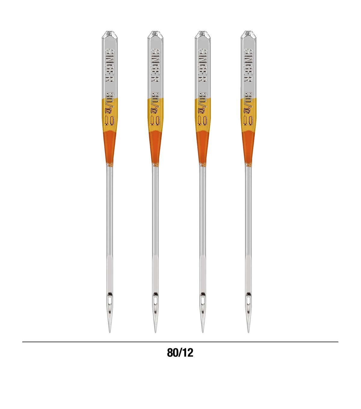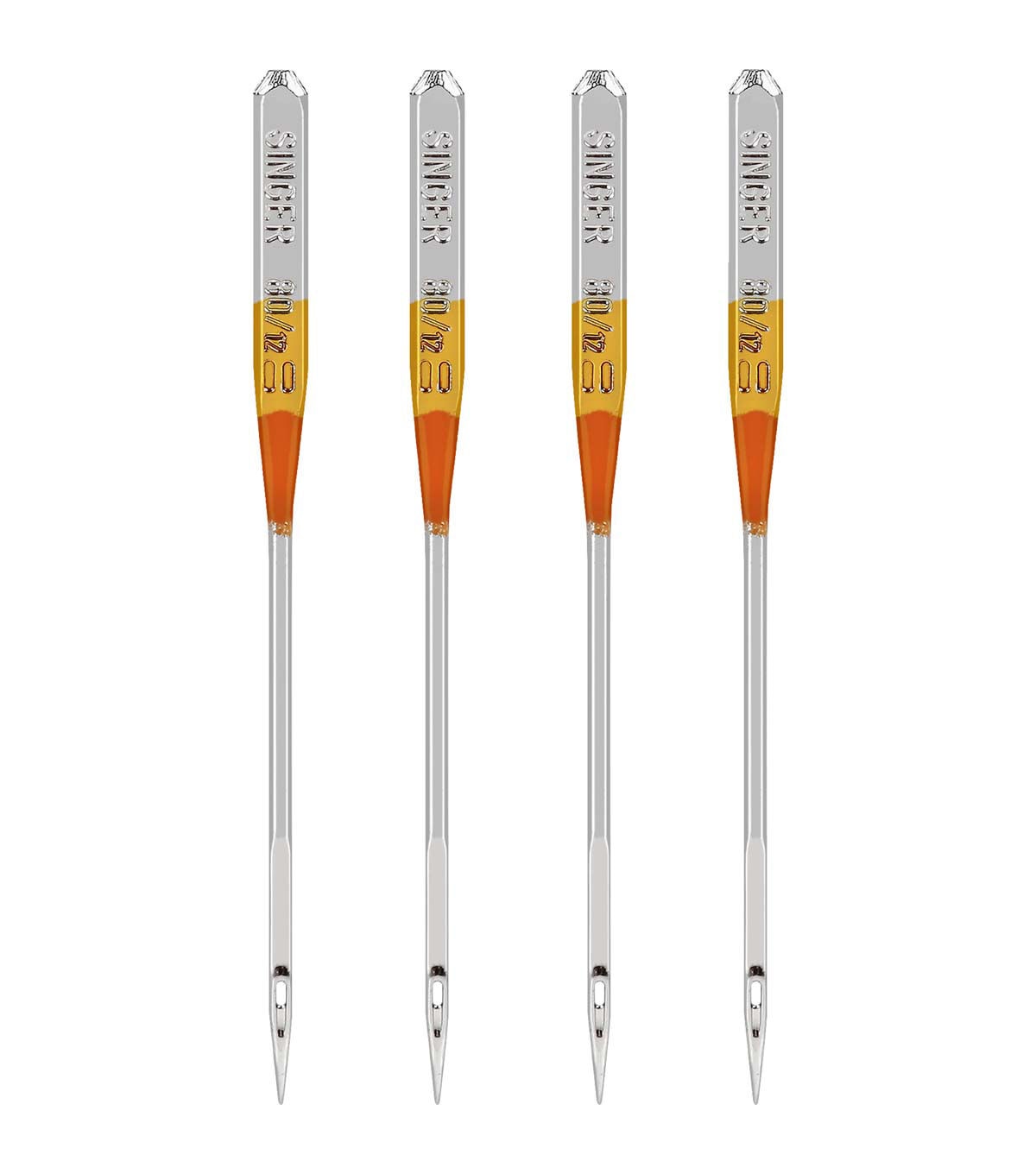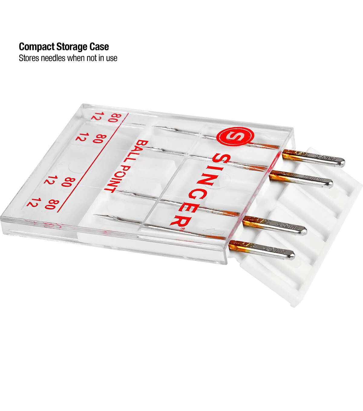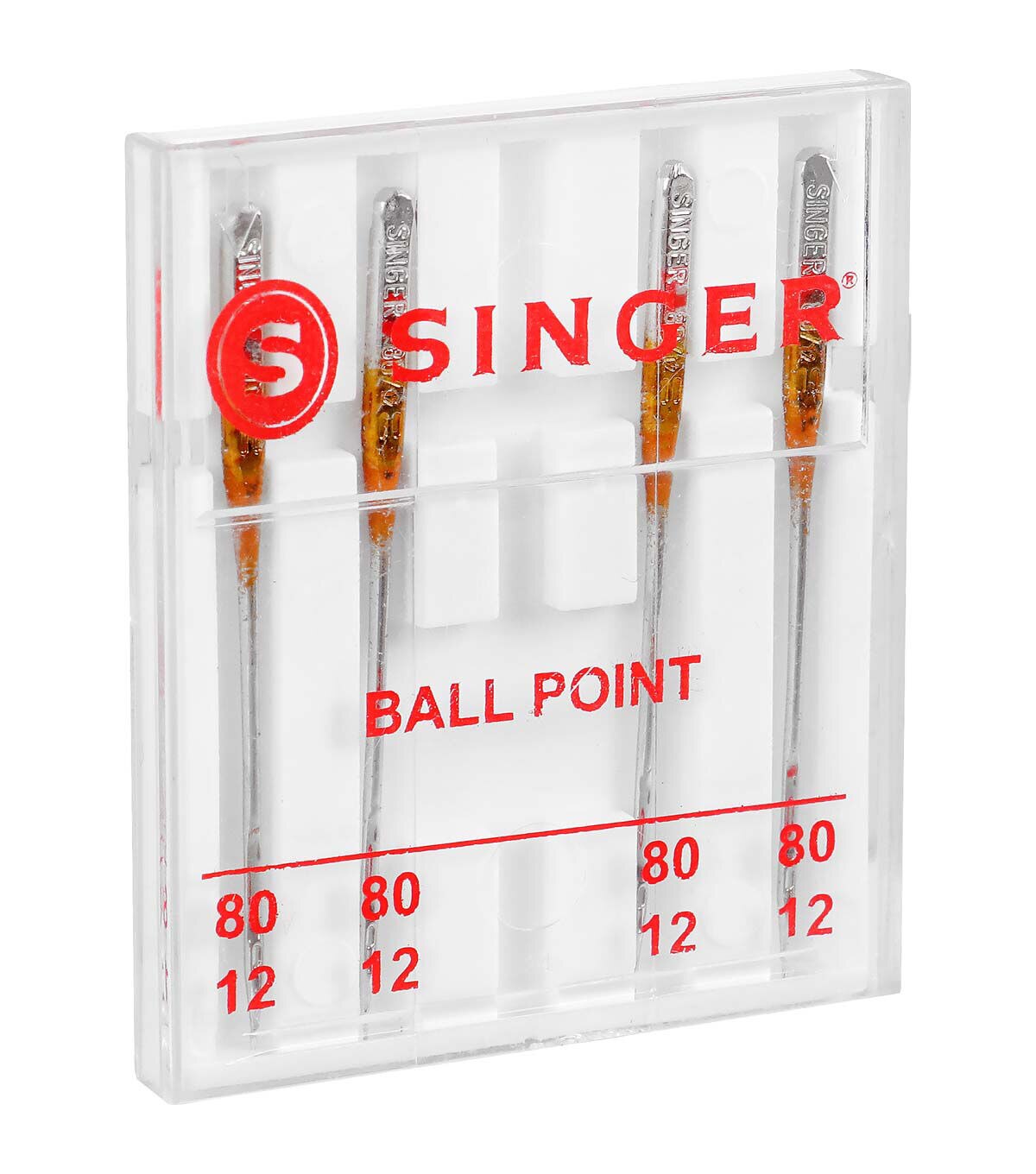 Add the Singer Universal Ball Point Machine Needles to your sewing kit for handy access when working on lightweight knit fabrics. These needles are designed to help prevent skipped stitches when working with knits and avoid holes or runs in knit fabrics. They are compatible with most sewing machines including Singer, Brother, Kenmore and other quality sewing machines. Singer color-coded needles make it easy to identify the proper needle size. This pack includes four needles in size 80/11.