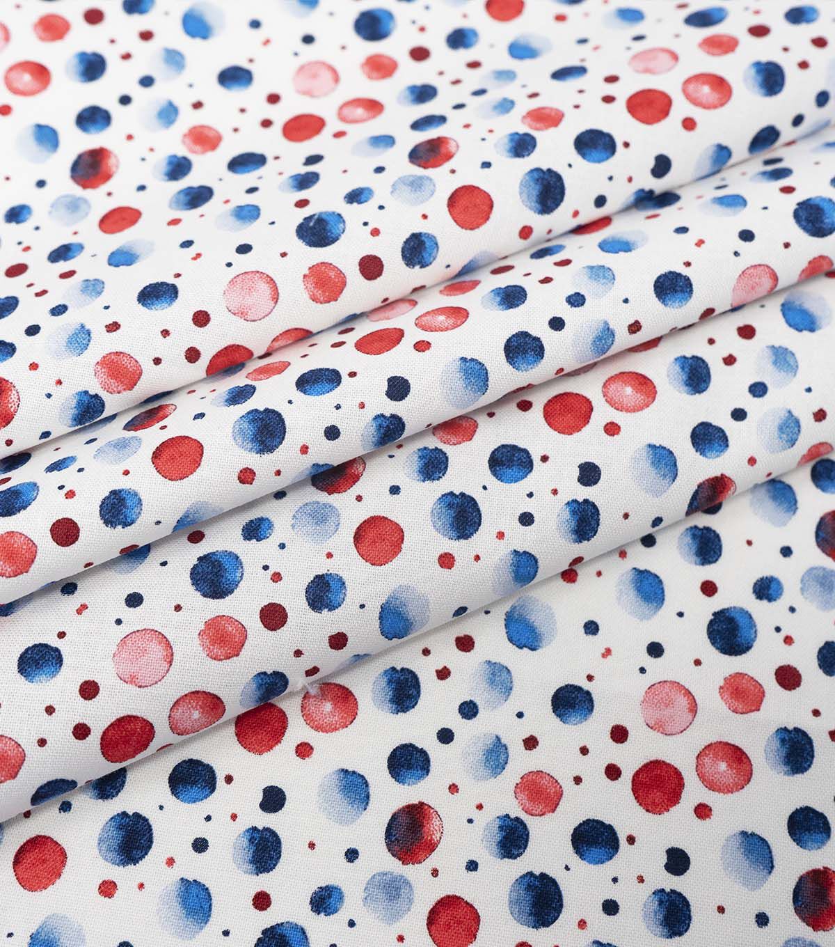 Get Patriotic with Watercolor Dots on Blue Cotton Fabric