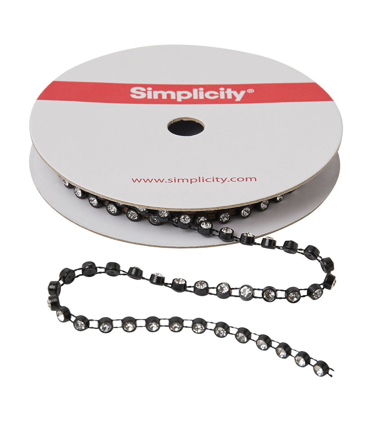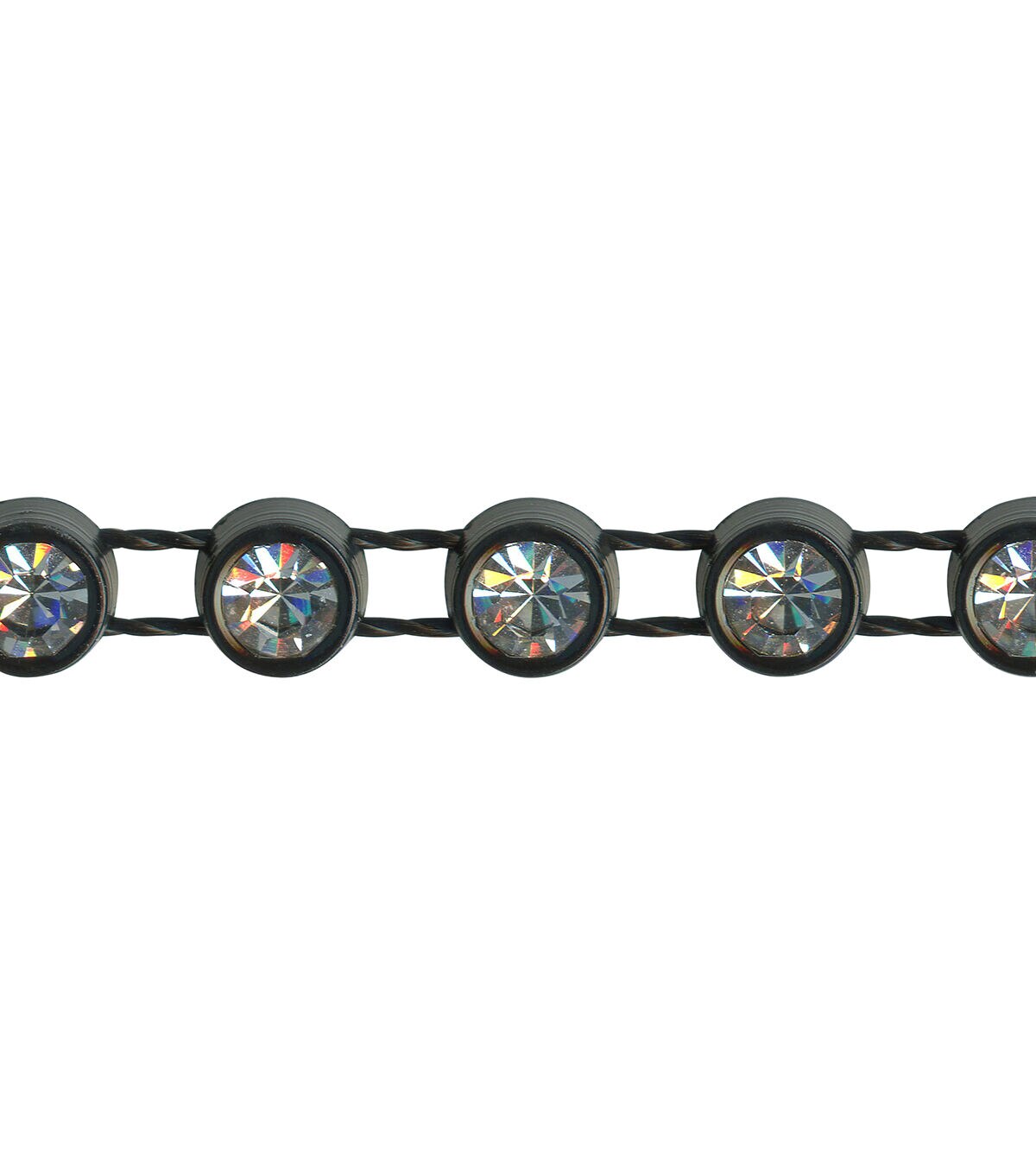 This 1/8 inch single strand black rhinestones trim is a PET/cotton/polyester blend. Perfect for apparel design, home décor inspirations or any DIY design!
