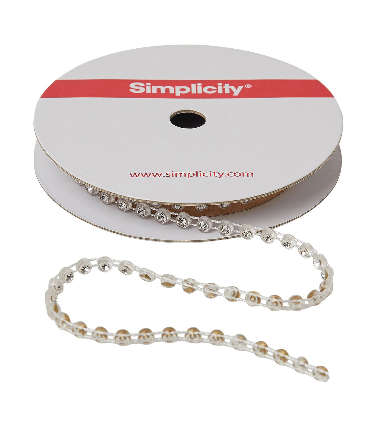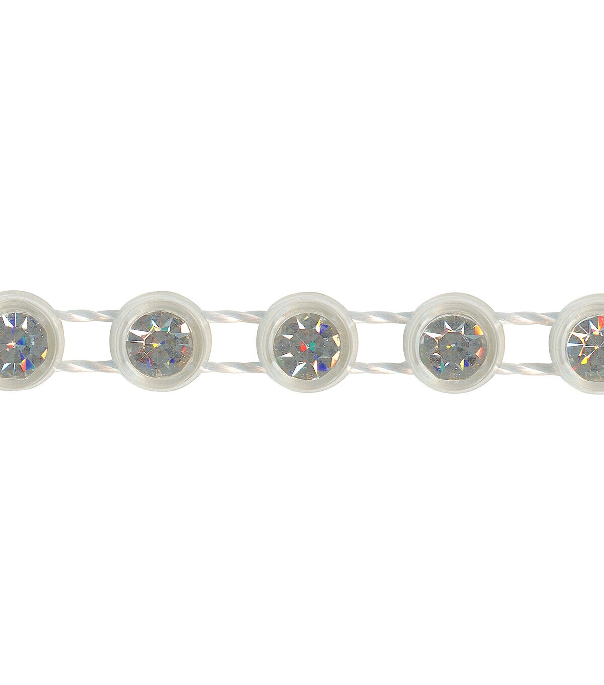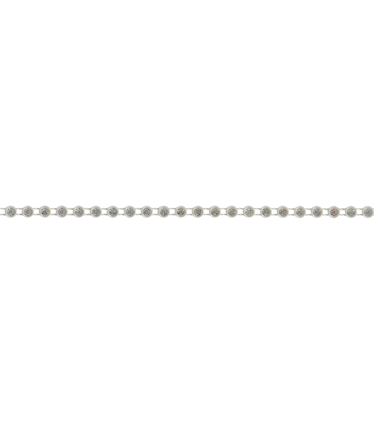This 1/8 inch single strand silver rhinestones trim is a PET/cotton/polyester blend. Perfect for apparel design, home décor inspirations or any DIY design!