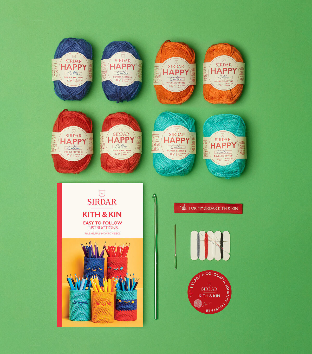 - Kit Includes: 8 balls of Sirdar Happy Cotton, 100% cotton. Crochet Hook, Darning Needle and easy to follow instructions