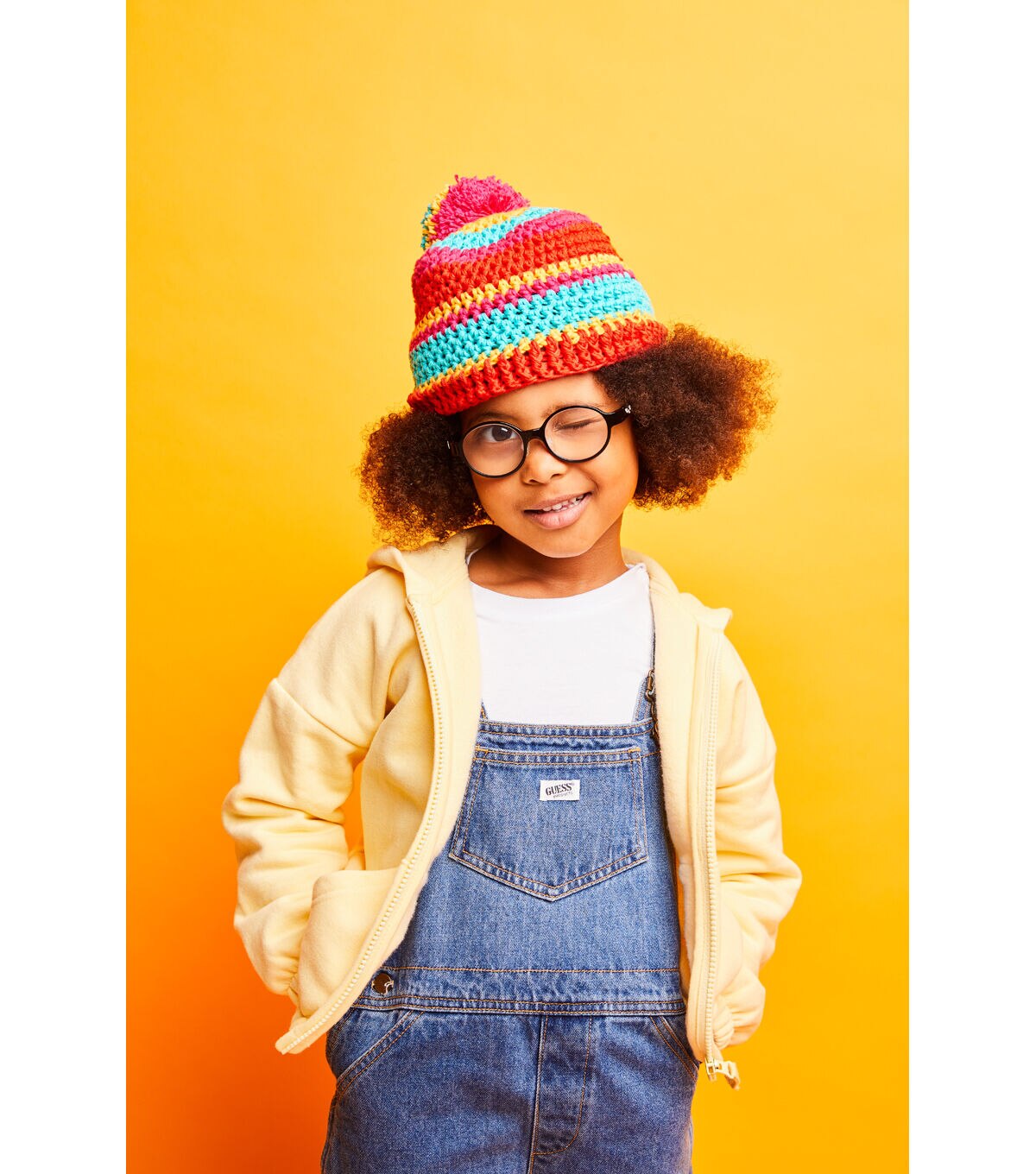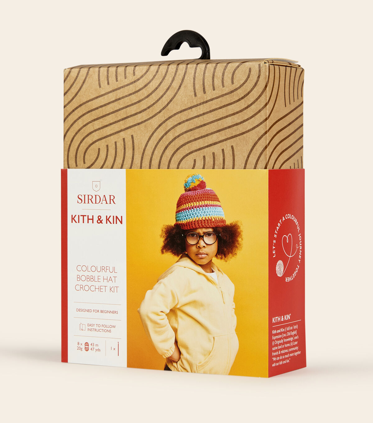 Crochet this hat with its bold stripes and bright pom pom for a cool kid with bags of attitude. Designed especially for beginners, this crochet kit includes everything you need to start your crochet journey with a fun simple project.