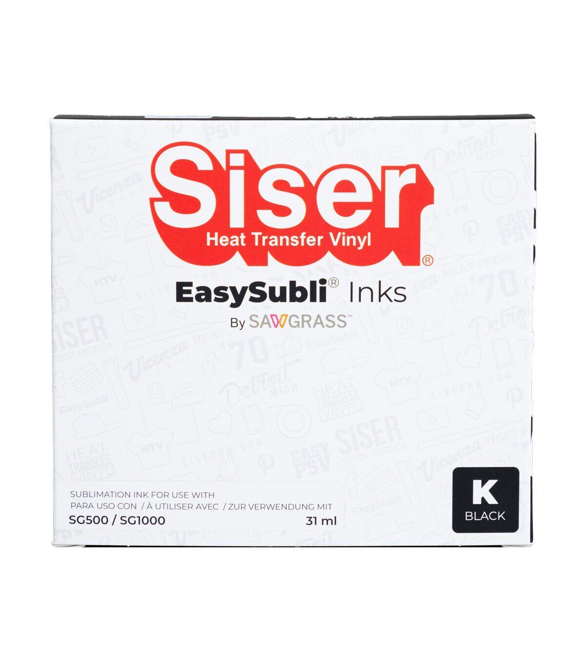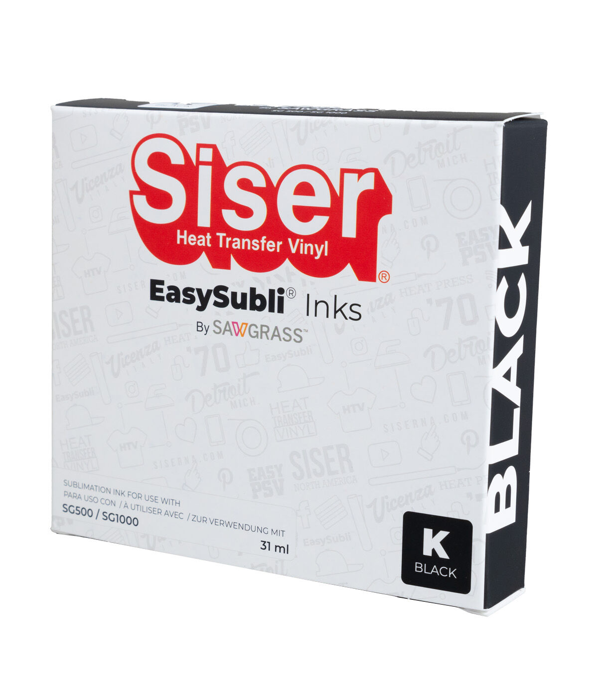 EasySubli Black Ink is used to help you achieve the deepest and darkest blacks with HD quality in your designs. EasySubli inks were specially formulated to work with the SG500 printer. The printer requires four colors which are in individual easy-to-install no mess cartridges: Cyan, Magenta, Yellow, and Black.