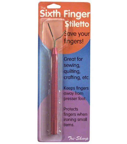 The Colonial Needle Sixth Finger Stiletto will make a great addition to the toolbox of a seamstress, quilter or crafter. This stiletto protects your fingers when ironing, gets in tight places with ease and allows you to work very safely close to the needle of your sewing machine. It is also great for guiding machine appliques, holding small seams open when ironing, guiding quilt pieces under the pressure foot and any project that demands getting close to the needle or iron.