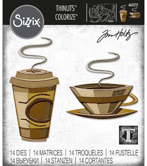 This contemporary design takes a popular motif and enables you to use it creatively in your projects. The Cafe die set by Tim Holtz features 14 pieces, including a mug and takeaway coffee cup for all those hot drink lovers in your life! With the Colorize design, you can add dimension and detail to your makes by the colors you choose to use. Includes 14 dies in package. Thinlits create dazzling detailed shapes for more creative cardmaking and papercrafting projects. These wafer-thin chemically-etched die sets are designed to cut, emboss or stencil a single sheet of cardstock, paper, metallic foil or vellum. To stencil, place the die over desired material and apply ink or chalk to the die indentations. This technique can be used alone or to enhance embossed designs. Design Dimensions: 1 5/8 x 2 3/8