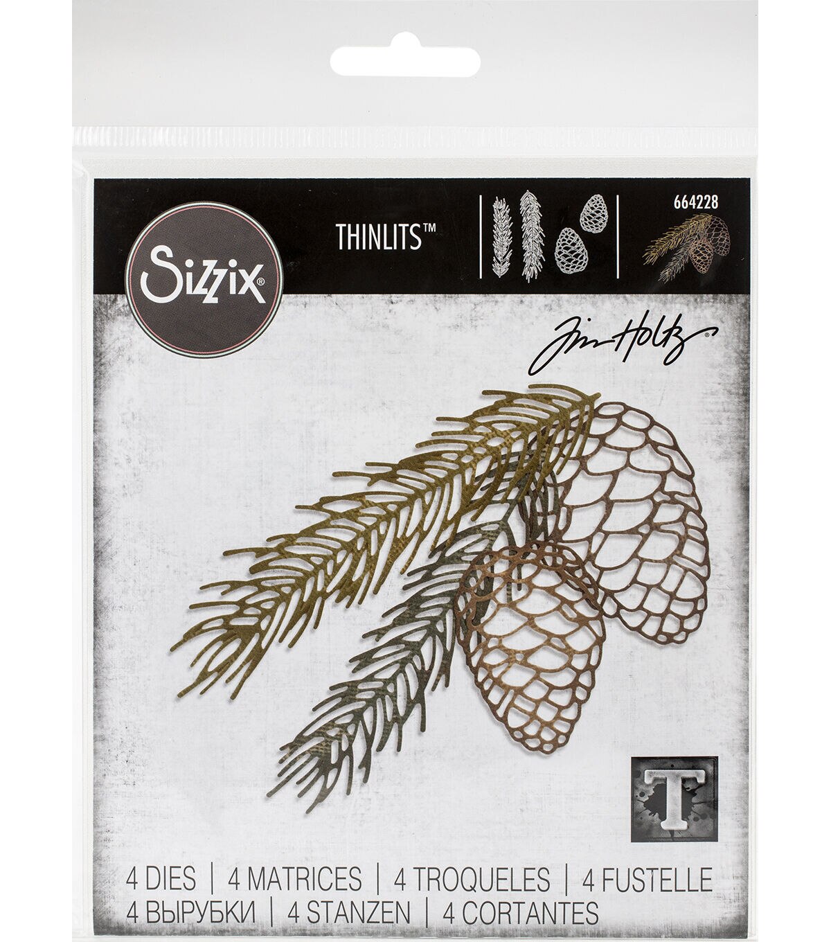 Thinlit dies offer a variety of affordable solo options or multi die options. Thinlits are easy to use and are compact and portable. Compatible with most die-cutting machines (not included). This package contains four dies measuring between 1.375x1.875 inches and 2.5x4 inches. Design: Pine Branch. Designer: Tim Holtz. Imported.