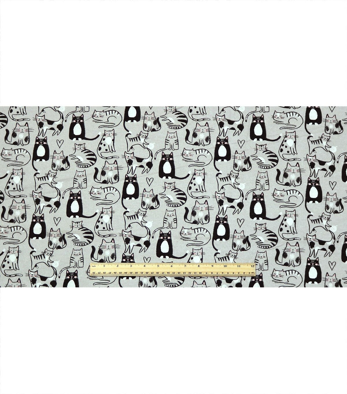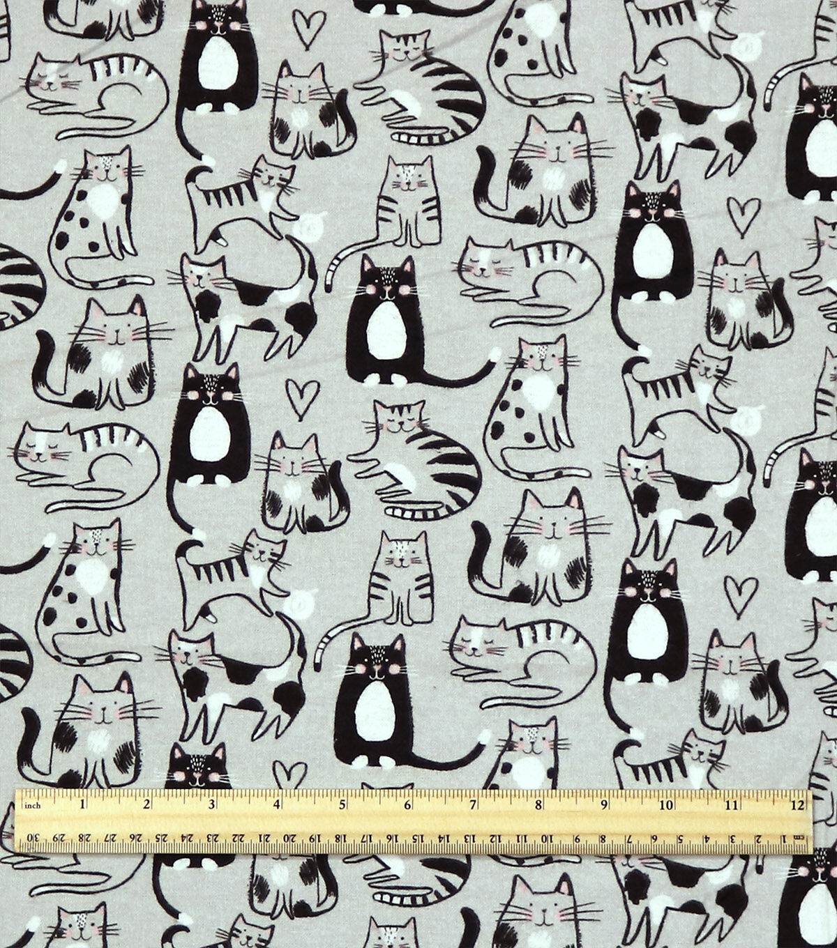 Sketched Kitty on Gray Super Snuggle Flannel Fabric