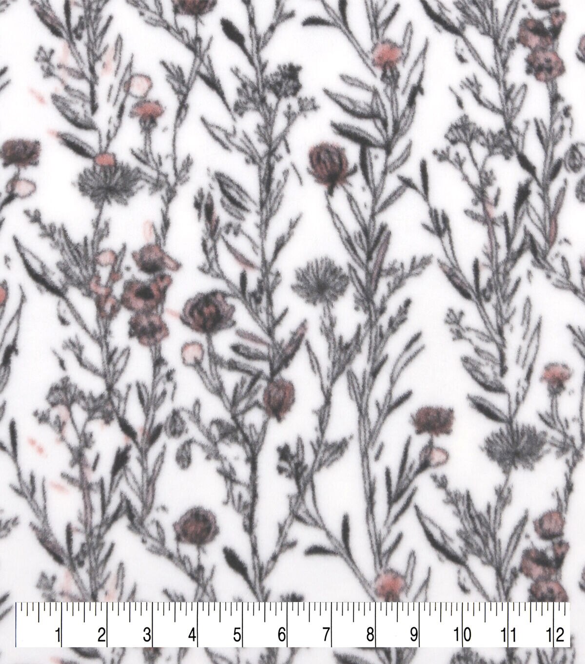 Sketchy Floral on White Anti Pill Fleece Fabric