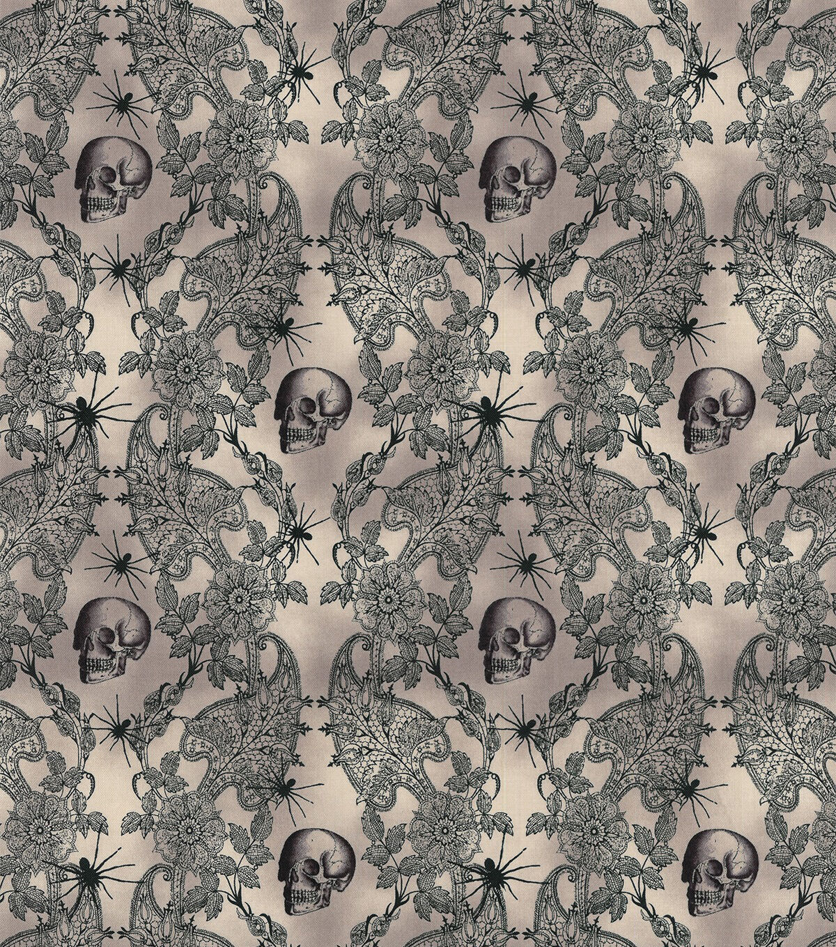 Skulls And Lace Halloween Cotton Fabric