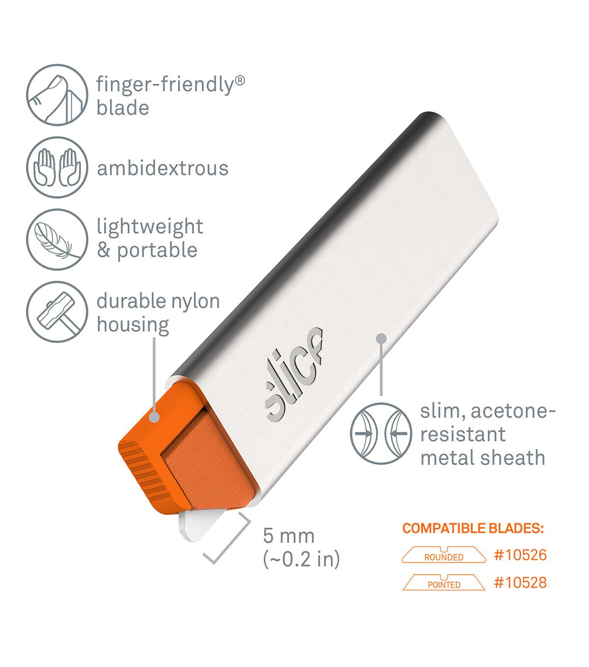 - Finger-friendly blade