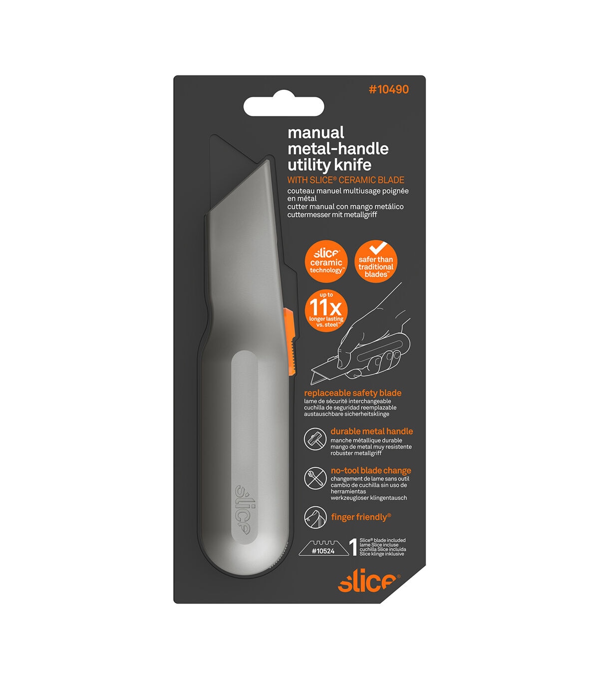 The Slice Manual Metal-Handle Utility Knife gives you power and safety in this industrial strength tool. It has a durable metal handle, ergonomically designed for comfort, and a finger-friendly blade that’s safe to the touch. For additional protection, you can easily retract the blade - and you can conveniently store a spare blade in the handle. This highly versatile and easy-to-use knife is great for opening boxes and packaging, cutting foam board, cork, plastic banding, double wall corrugated, and vinyl.