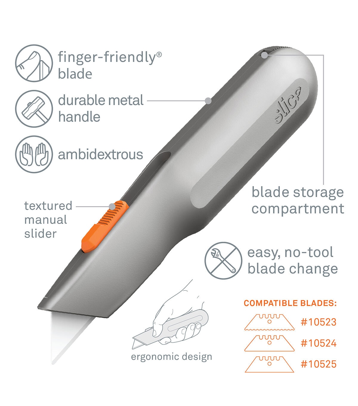 - An easy-grip slider allows you to manually retract the blade when not in use