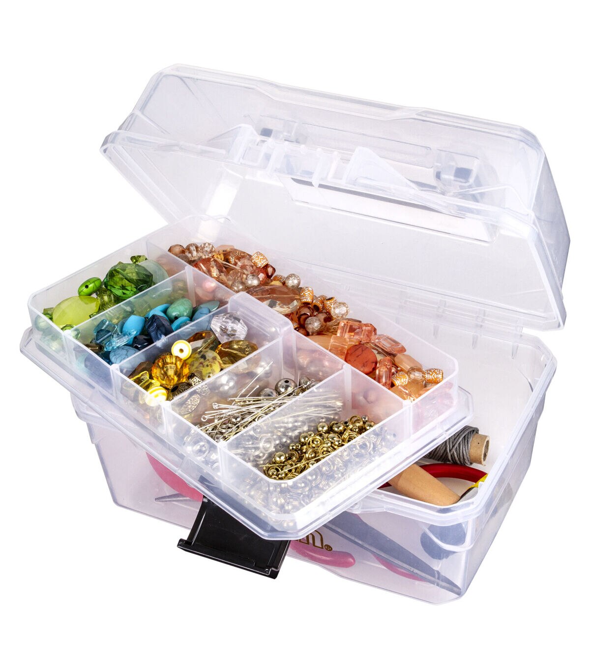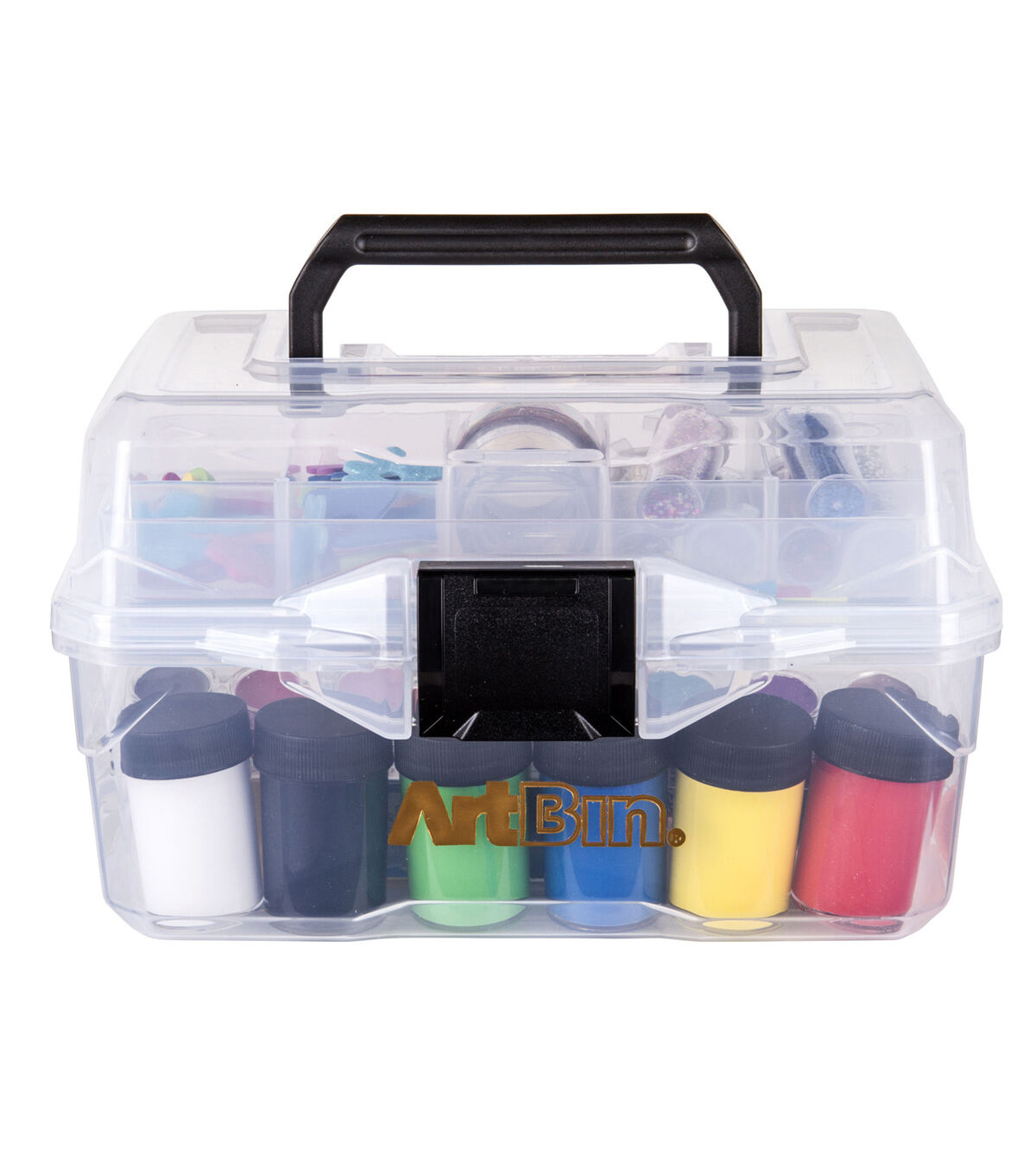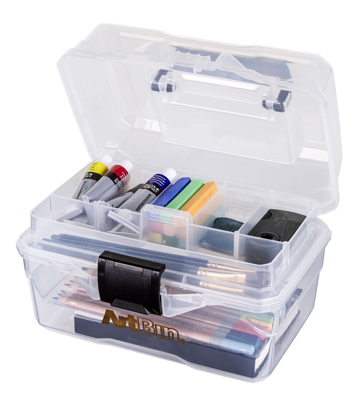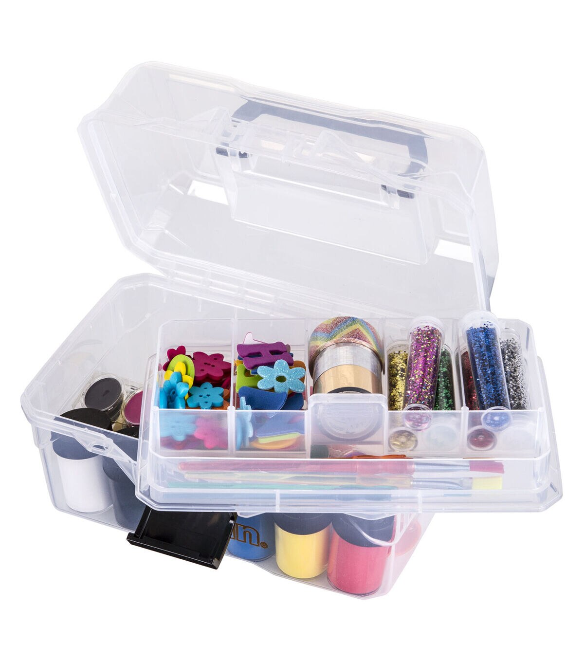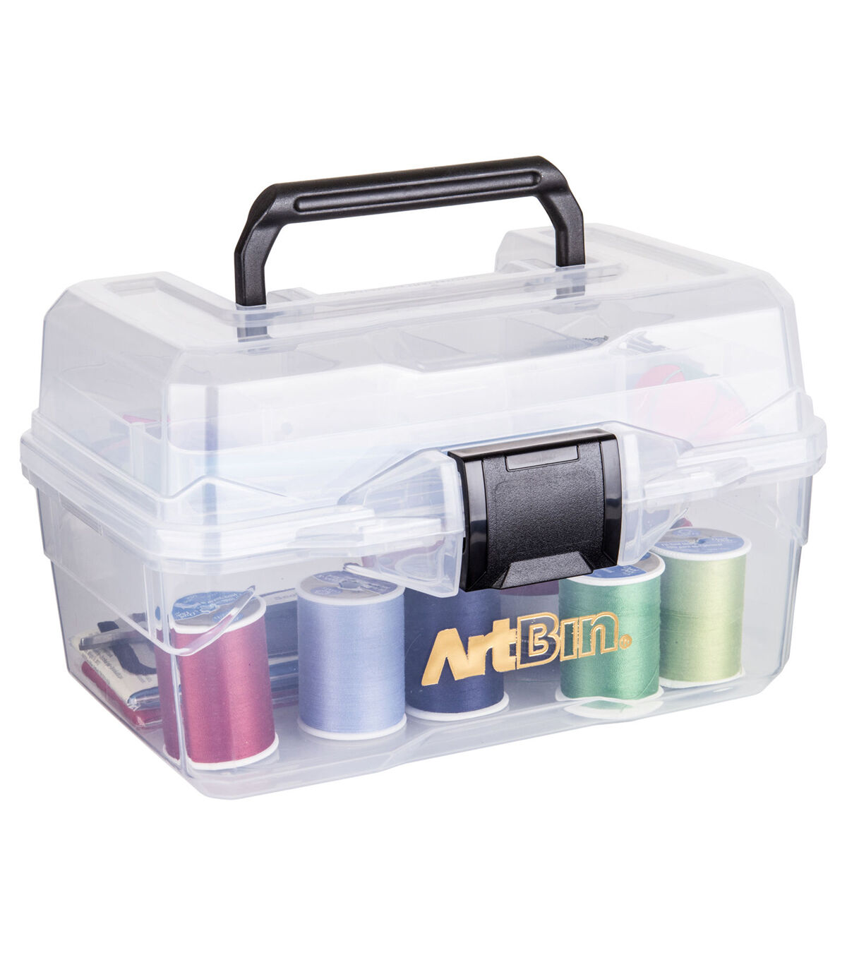 See your supplies at a glance with this crystal clear art/supply box. It's compact size makes this box ideal for children, small projects, watercolor painting supplies and sewing supplies. The sturdy handle and latch are great for projects on the go. Made in the USA.