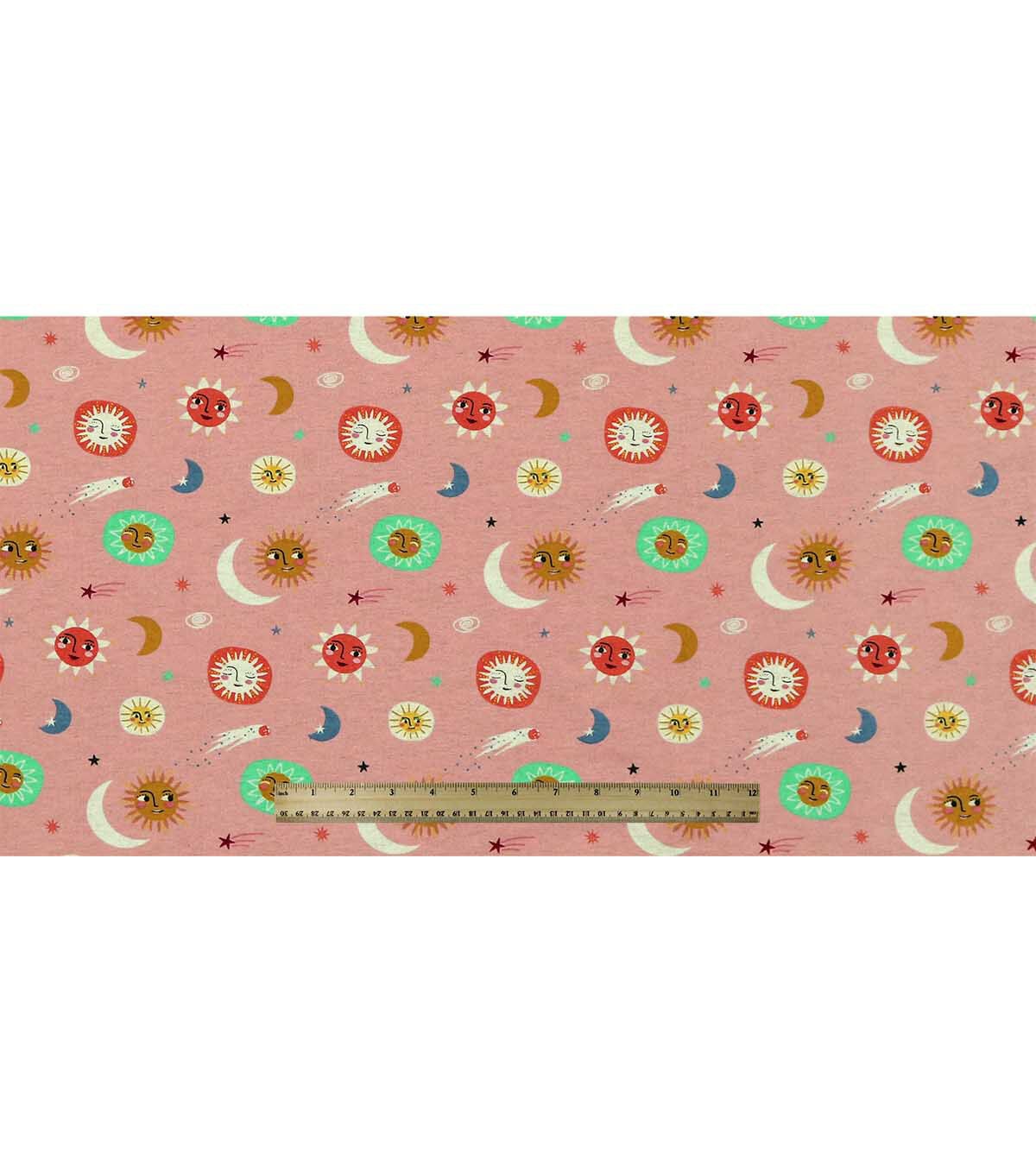 Small Suns & Moons On Pink Super Snuggle Flannel Fabric