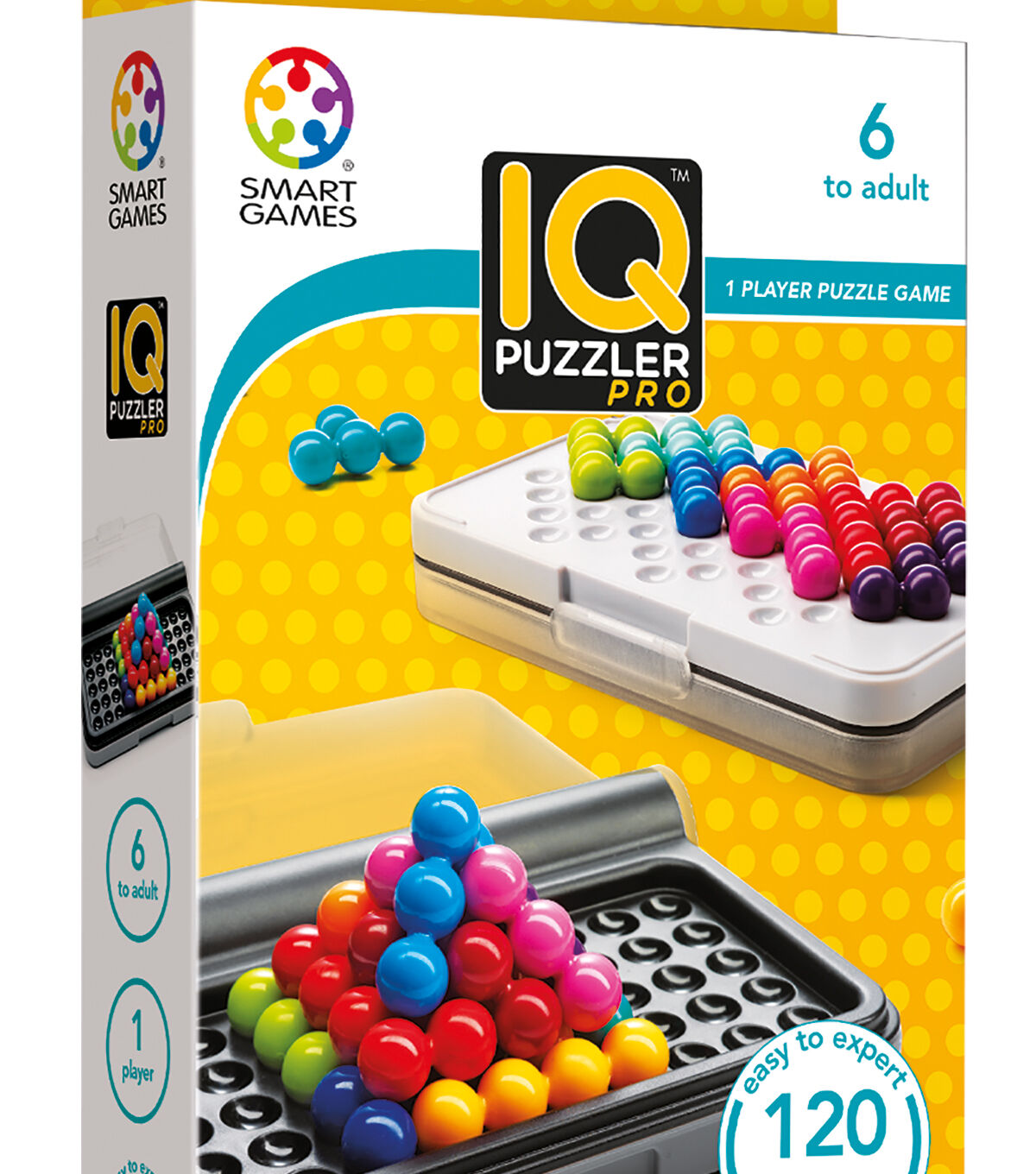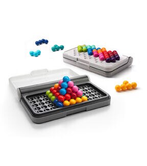 Have multiple levels of brain teasing fun with the SmartGames IQ Puzzler Pro Game. It features 120 challenges in three playing modes, including both 2D and 3D challenges. This game comes with one compact game board with transparent lid, 12 colorful puzzle pieces, one booklet with 120 challenges and solutions. The top of the game board features a grid for 2D challenges and a separate grid for 3D pyramid challenges, while the bottom of the board features a completely different 2D challenge grid. It comes in one compact, portable travel case.