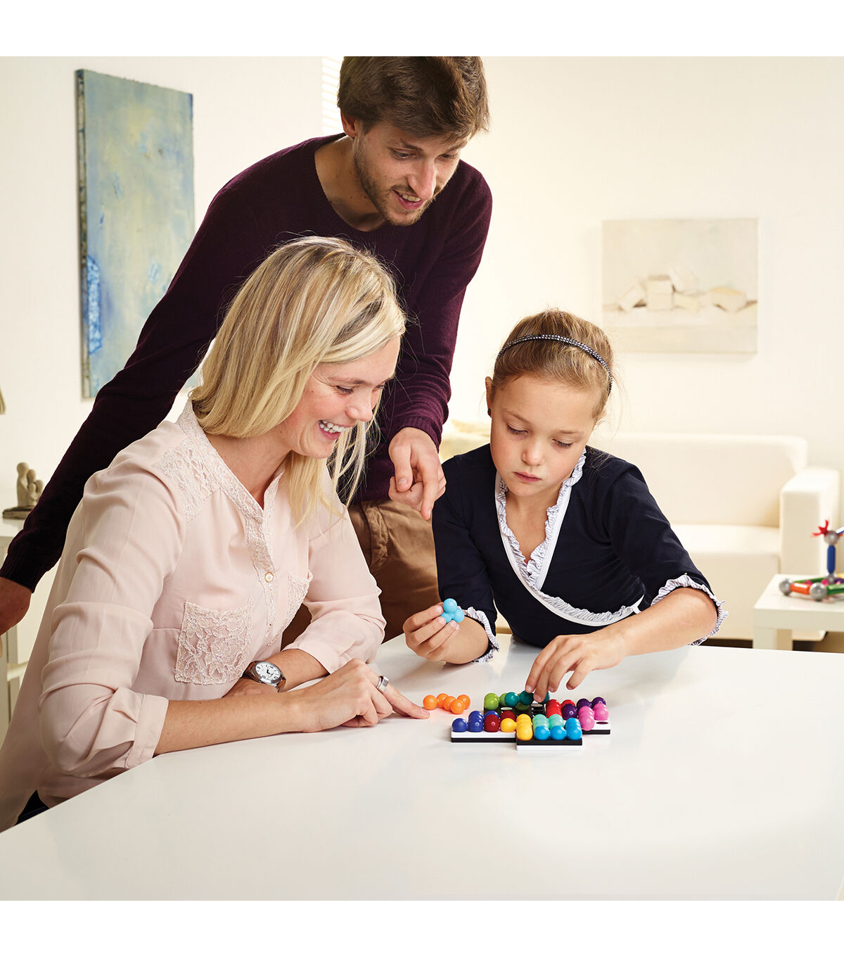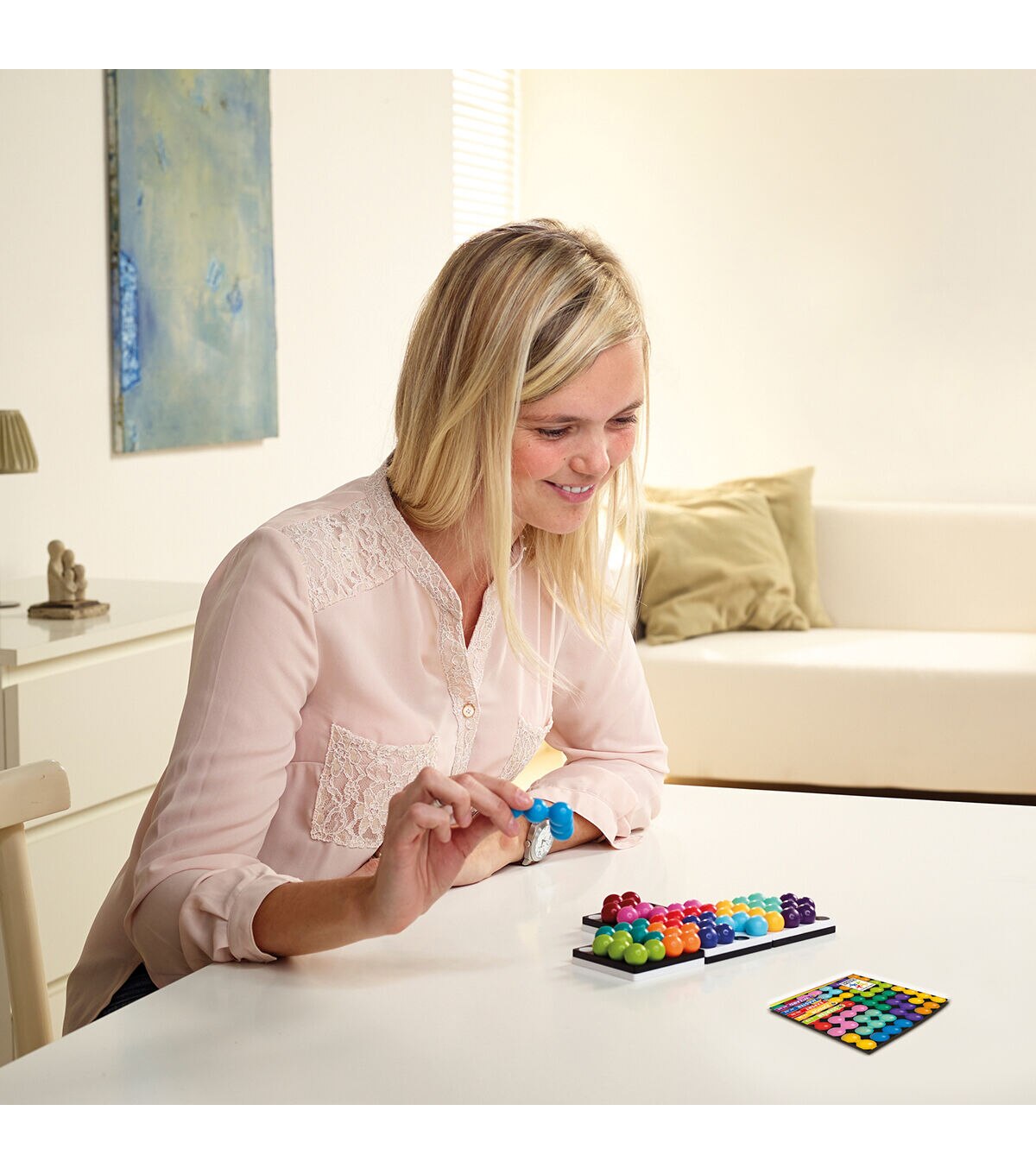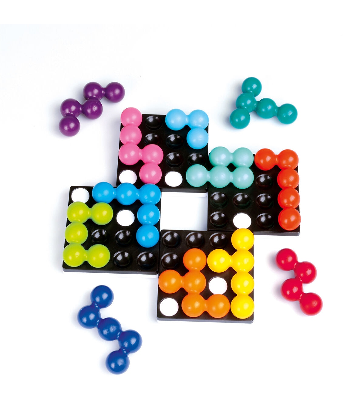 The SmartGames Quadrillion Puzzle Game offers a fun, unique twist on puzzle games. Start a new challenge in a snap, with no direction required. Just place the four magnetic grids together and start playing. Quadrillion is the ultimate solitaire game for all ages, with big, sturdy puzzle pieces that are easy and fun to handle. It offers a booklet with 80 DIY challenges and solutions to get you started. This kit also includes four black and white magnetic grids and 12 colorful puzzle pieces.