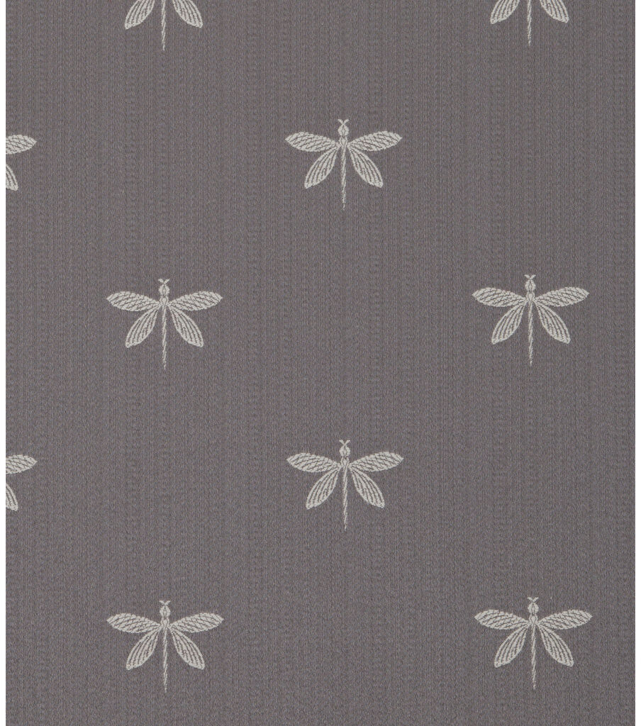 A delicate, intricate dragonfly motif with lots of details on a subtle strie satin ground.