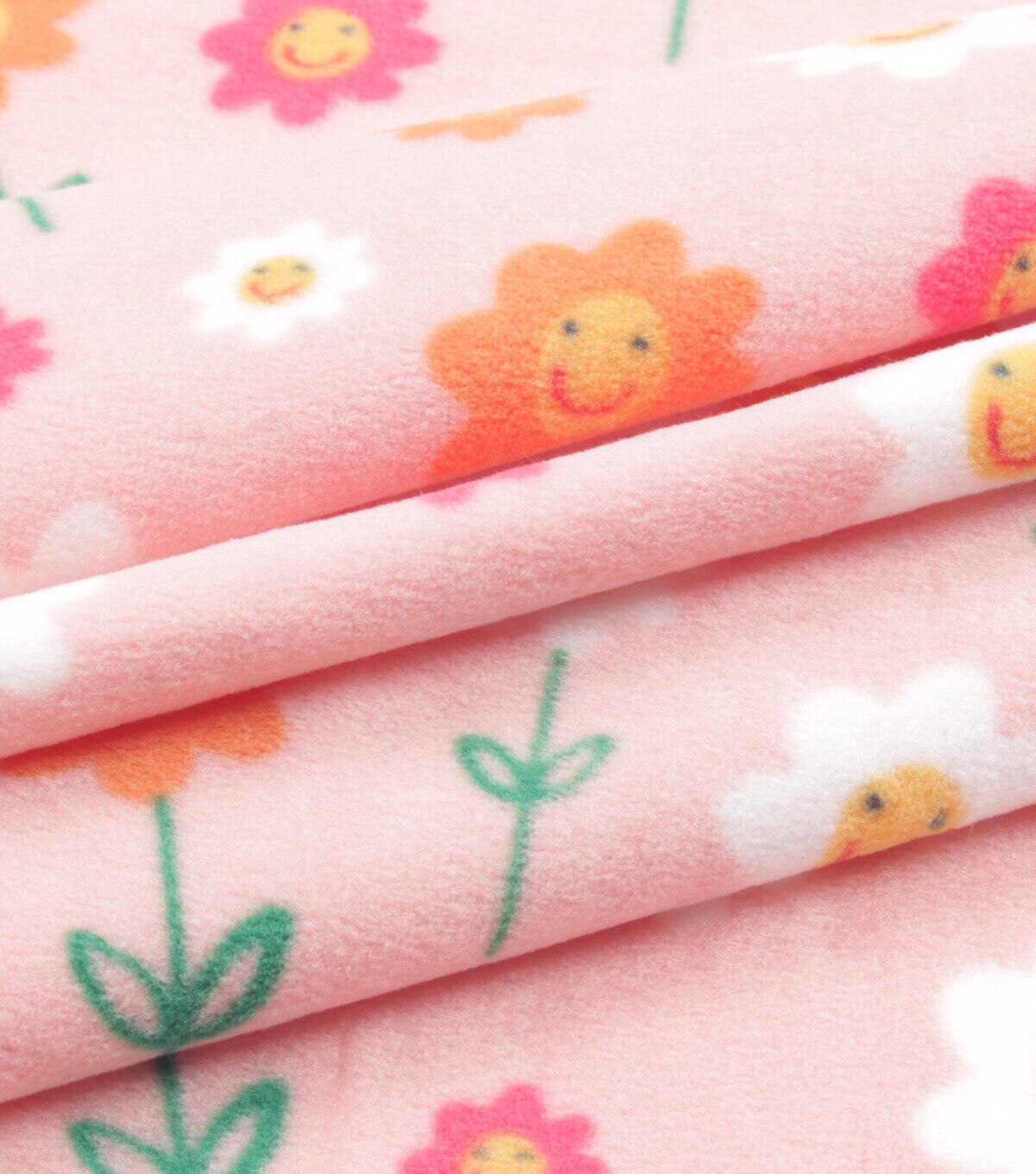 • Smiling Daisies on Pink Anti Pill Fleece Fabric by POP!