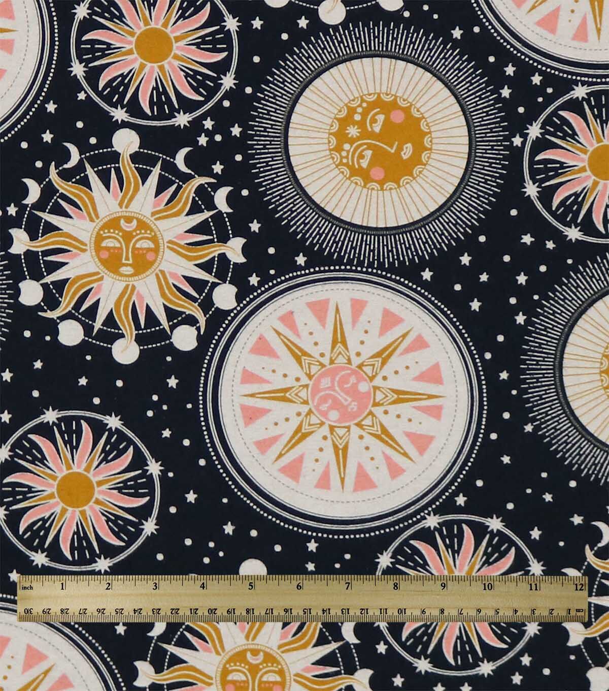 • Smiling Suns & Moons On Black Super Snuggle Flannel Fabric