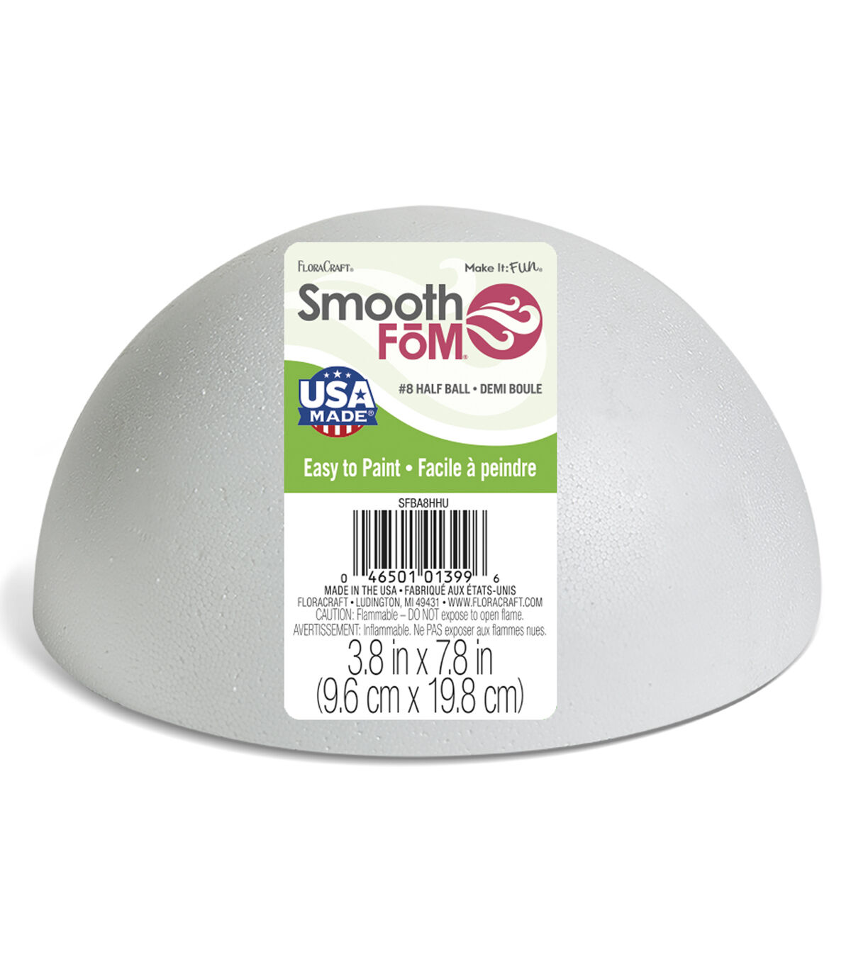 Start your school and craft projects with the right base by using FloraCraft SmoothFoM. Its smooth, durable, EPS foam structure is great for painting or coating with a broad range of products to create any custom color or texture. SmoothFoM is perfect for classroom projects, party and event displays as well as seasonal décor. This package contains one 3.8" x 7.8" SmoothFoM hollow half ball. Made in the USA.