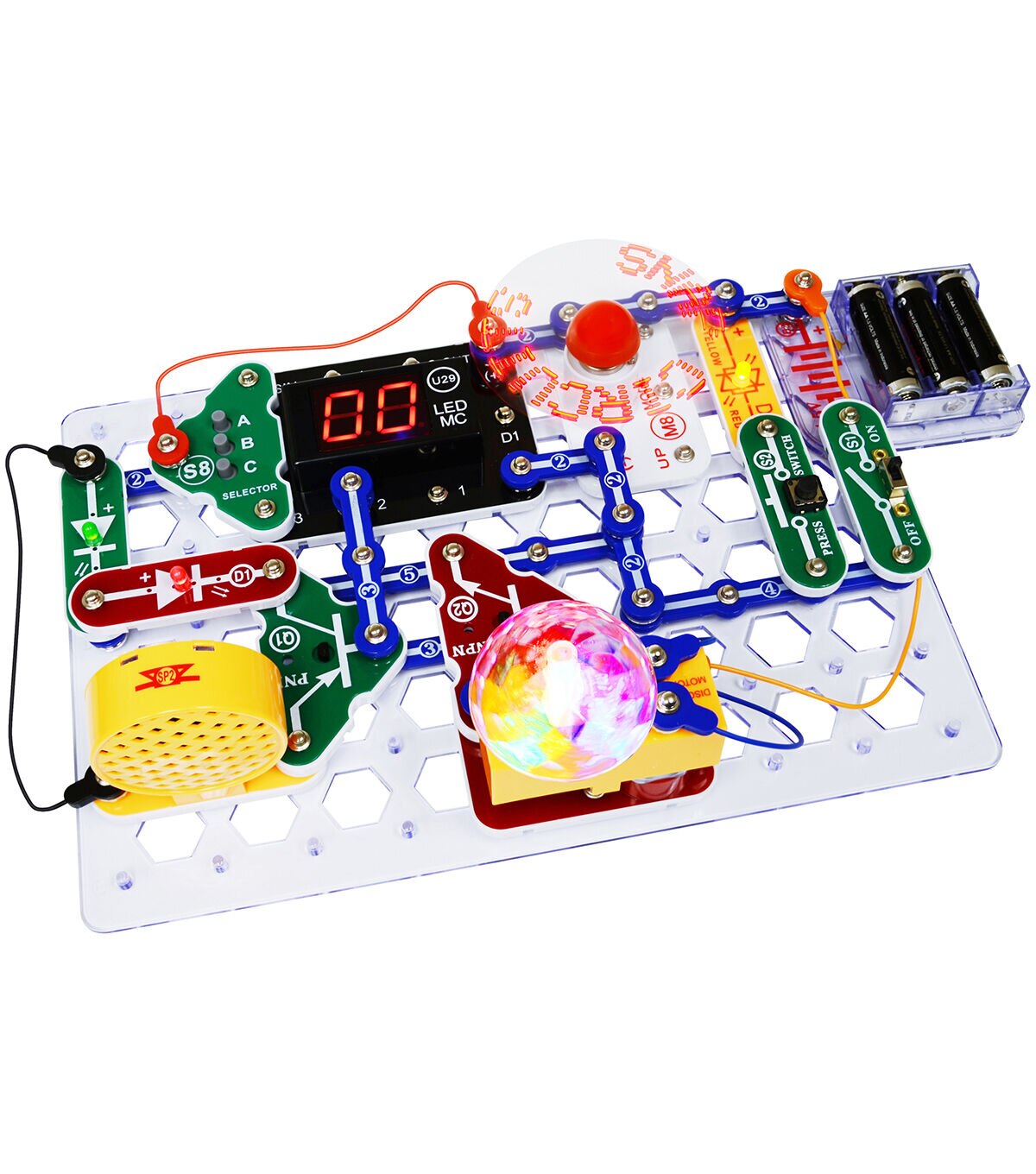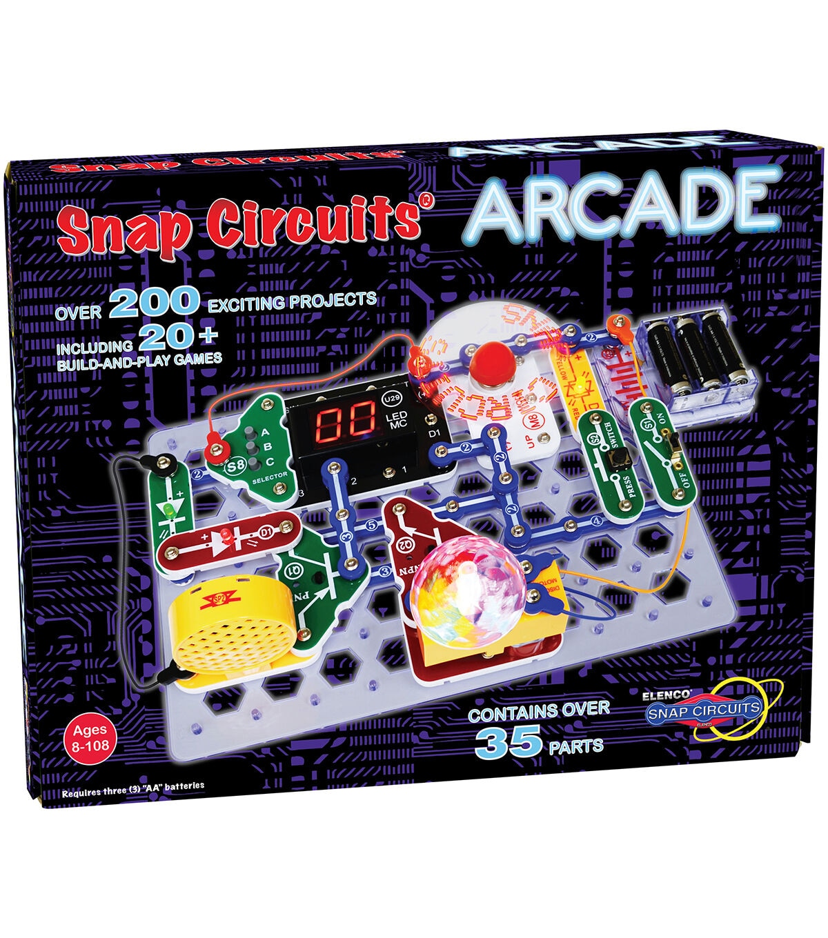 The Snap Circuits Arcade Over 200 Exciting Projects kit is an exciting introduction to problem-solving, following directions and the satisfaction of a job well done. It features over 35 parts to help complete more than 200 projects. Kids will enjoy completing projects using a programmable word fan, dual LED display and a pre-programmed micro-controller. A clear and concise illustrated manual included with explanations for different snap modules and concepts needed to build arcade projects. Recommended for ages eight and up.