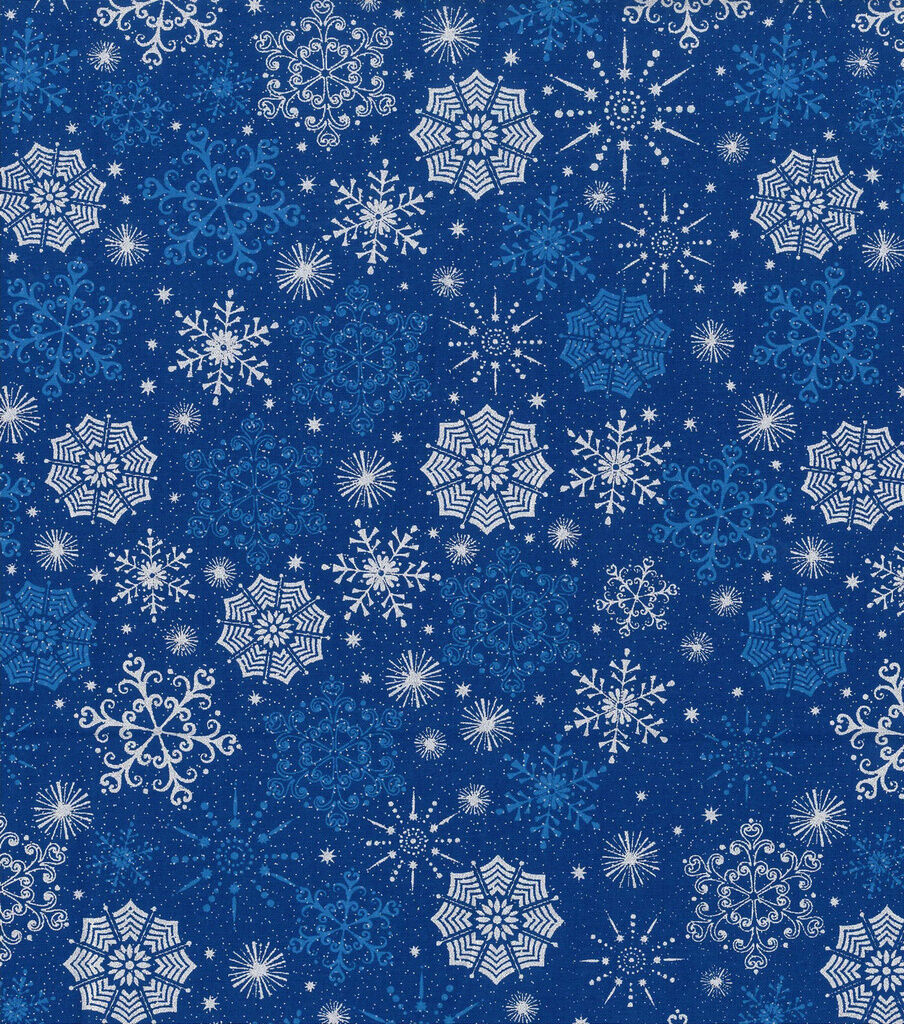 Get into the Holiday Spirit with Snowflakes on Blue Christmas Metallic Cotton Fabric