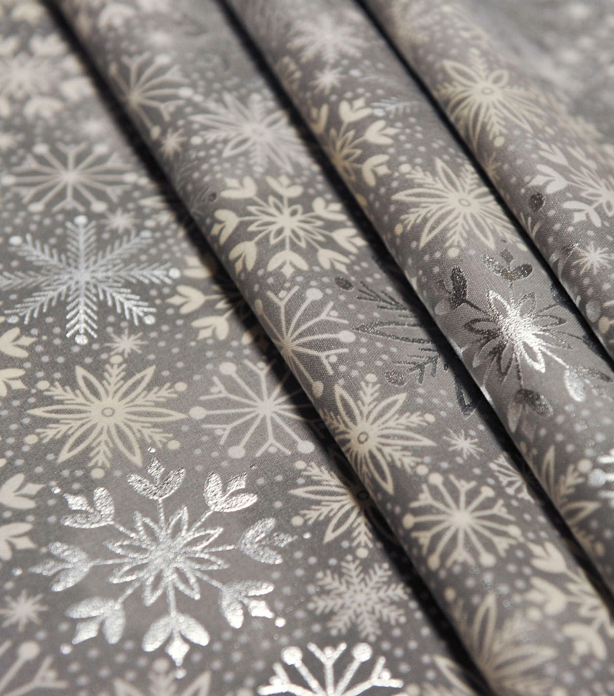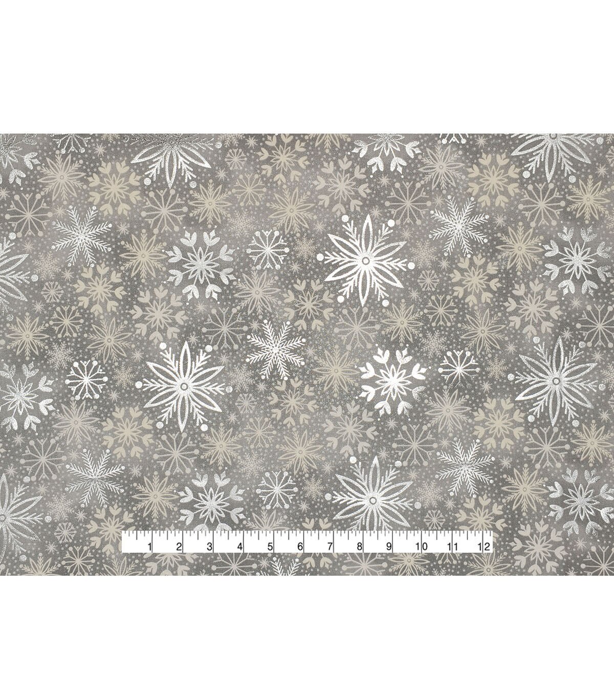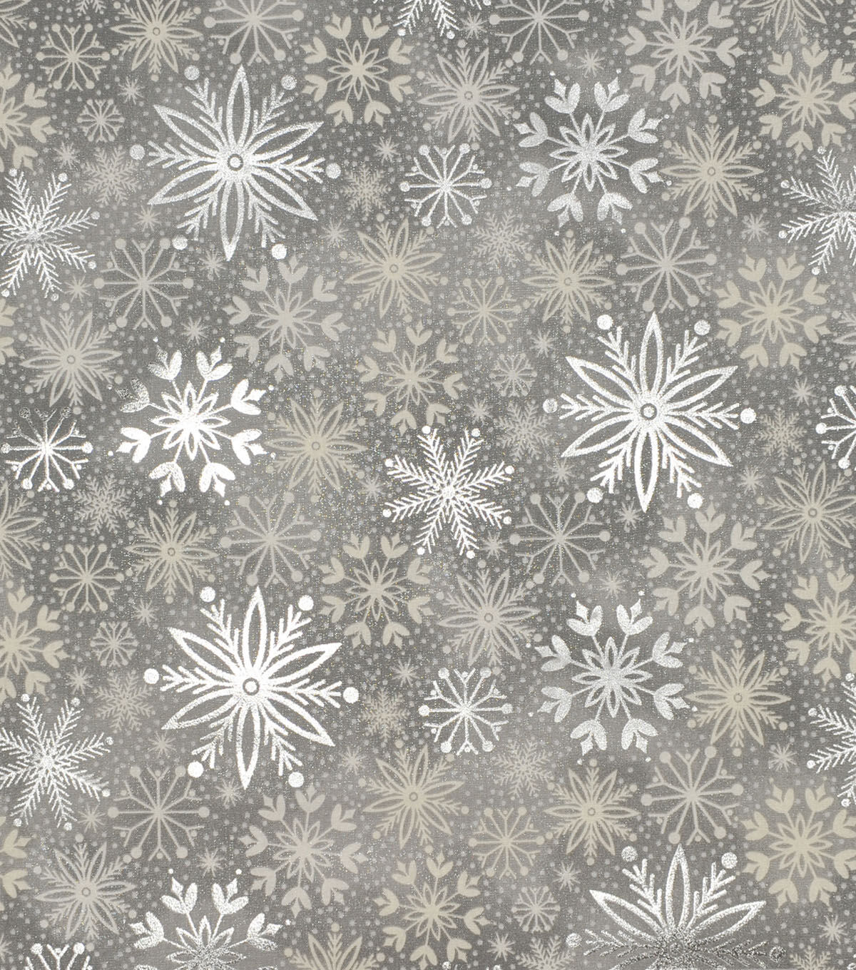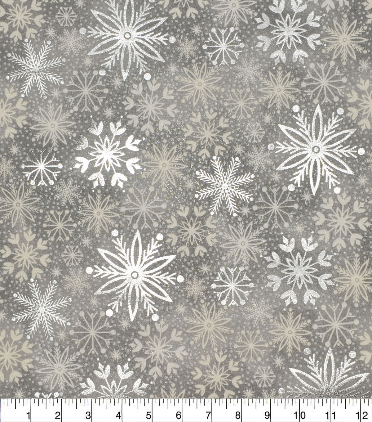 Get in the Holiday Spirit with Snowflakes on Gray Christmas Foil Cotton Fabric