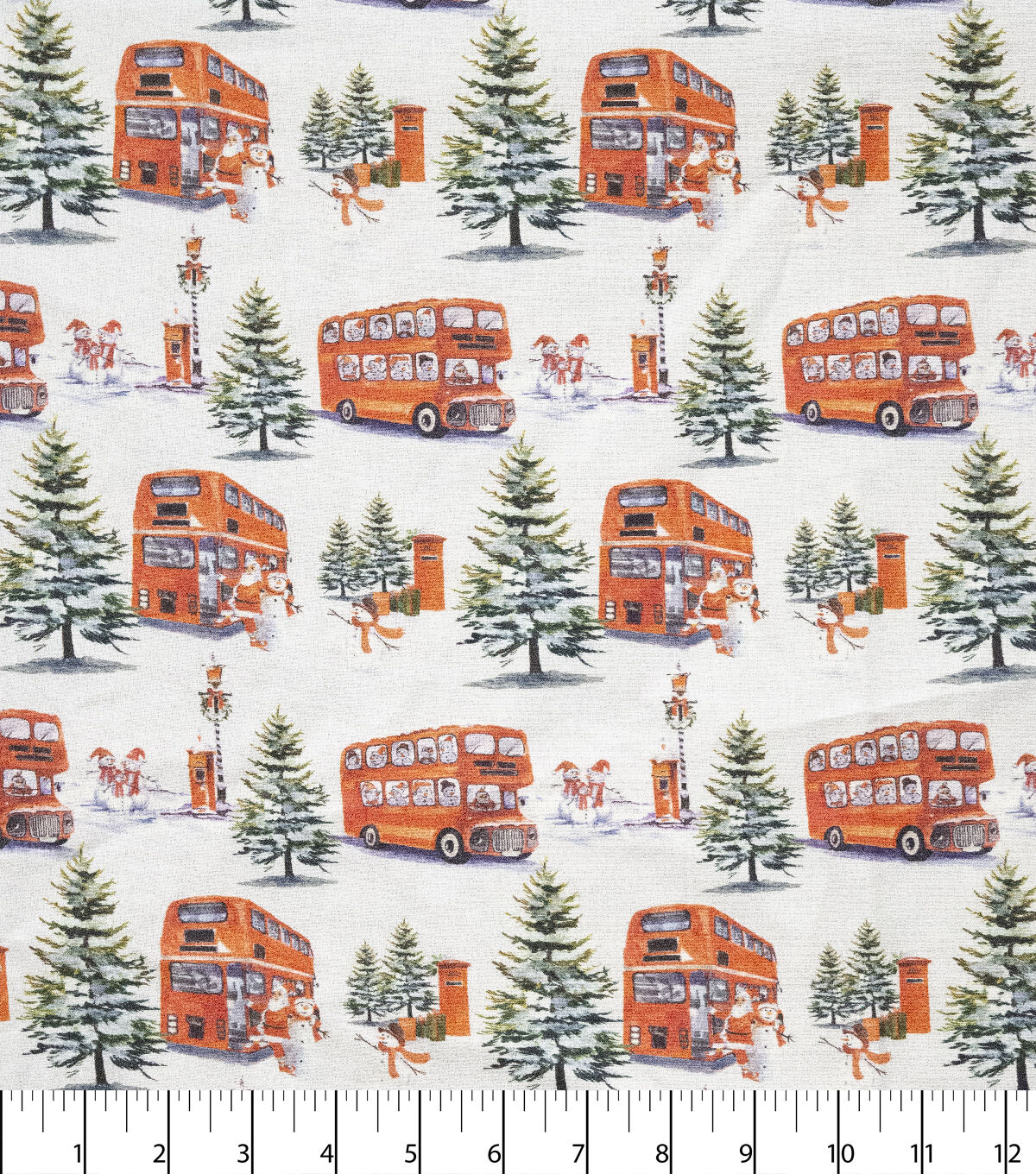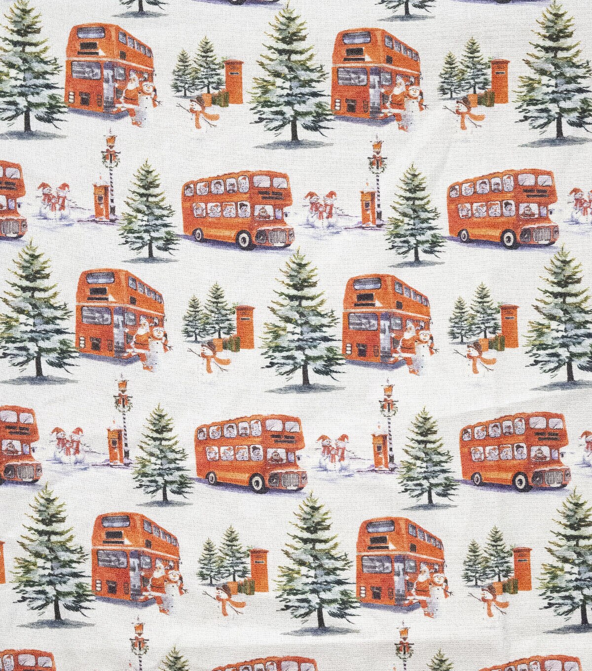 Snowman Tour Bus Christmas Cotton Fabric