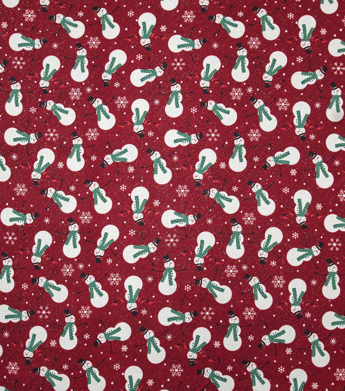 Get into the Festive Spirit with Snowmen & Snowflakes on Red Christmas Glitter Cotton Fabric