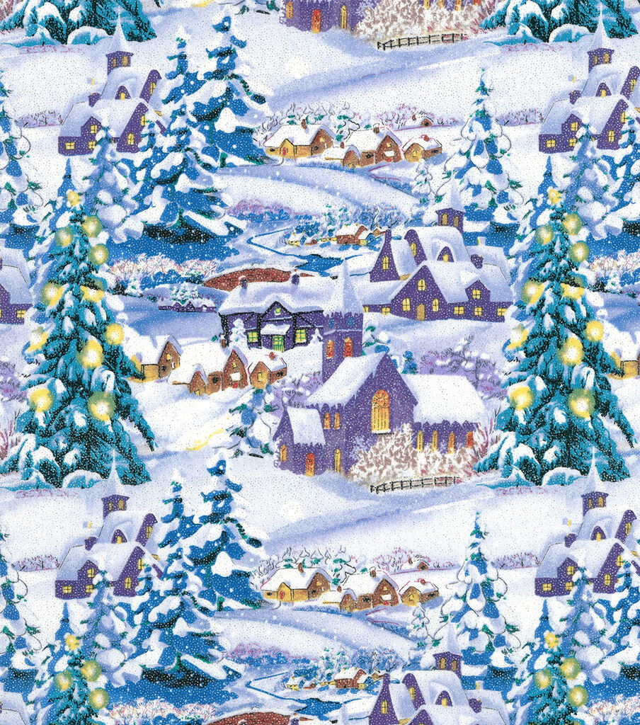 Get in the Holiday Spirit with Snowy Village Christmas Glitter Cotton Fabric