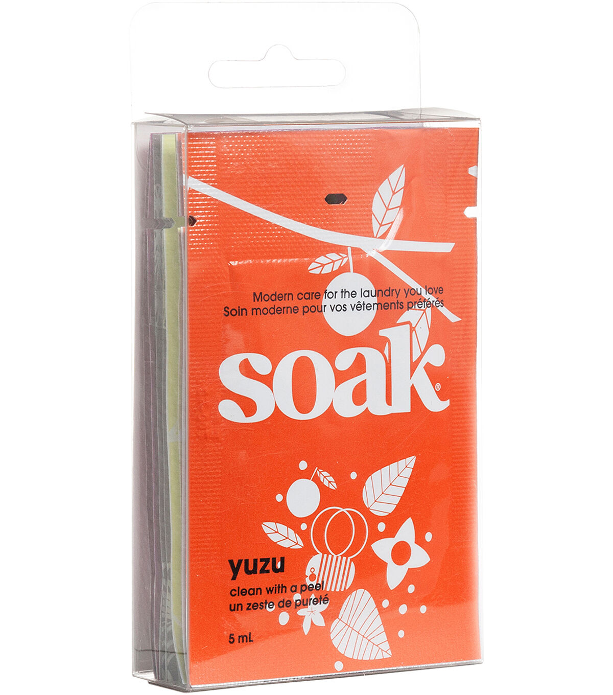 The Soak Assorted Minisoak Travel Pack is a pure, gentle and deliciously scented way to wash the delicate items you care about most. Keep the minisoak single-use samples in your travel bag for holidays, work trips and spontaneous weekend getaways. This rinse-free formulation is perfect for washing your favorite knits, lingerie, swim wear, quilts, softest sweaters and all the laundry you love. This pack contains eight 5 ml soak samples in assorted scents.