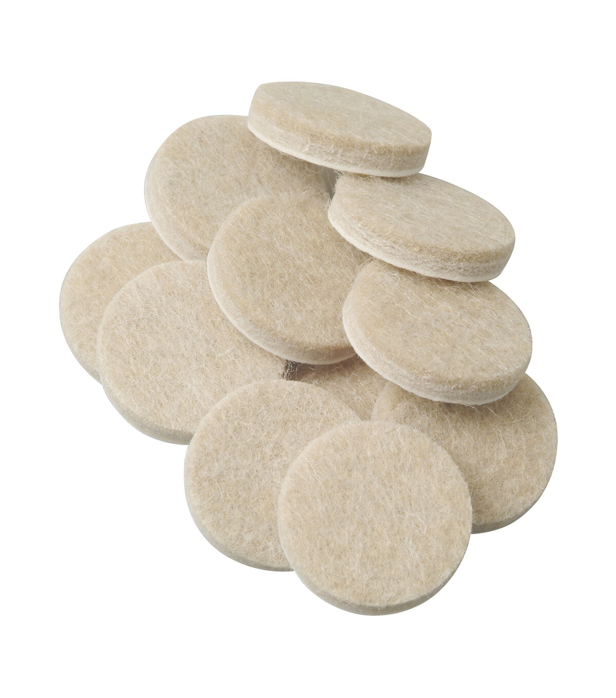 Attach the Waxman SoftTouch Felt Furniture Pads - Oatmeal to the underside of table, chair and desk legs to protect laminate, ceramic tile, linoleum, hardwood, terrazzo, vinyl or marble floor surfaces. This pack includes 48 self-sticking pads that measure 1 inch each. They will protect the floor from marring and scratches, and eliminate friction and noise during movement.
