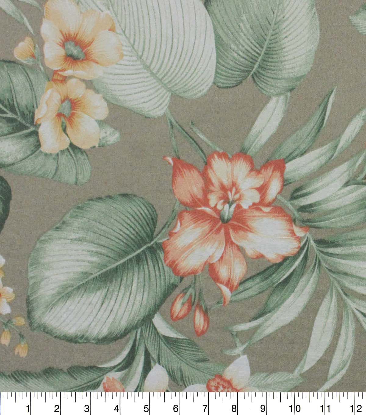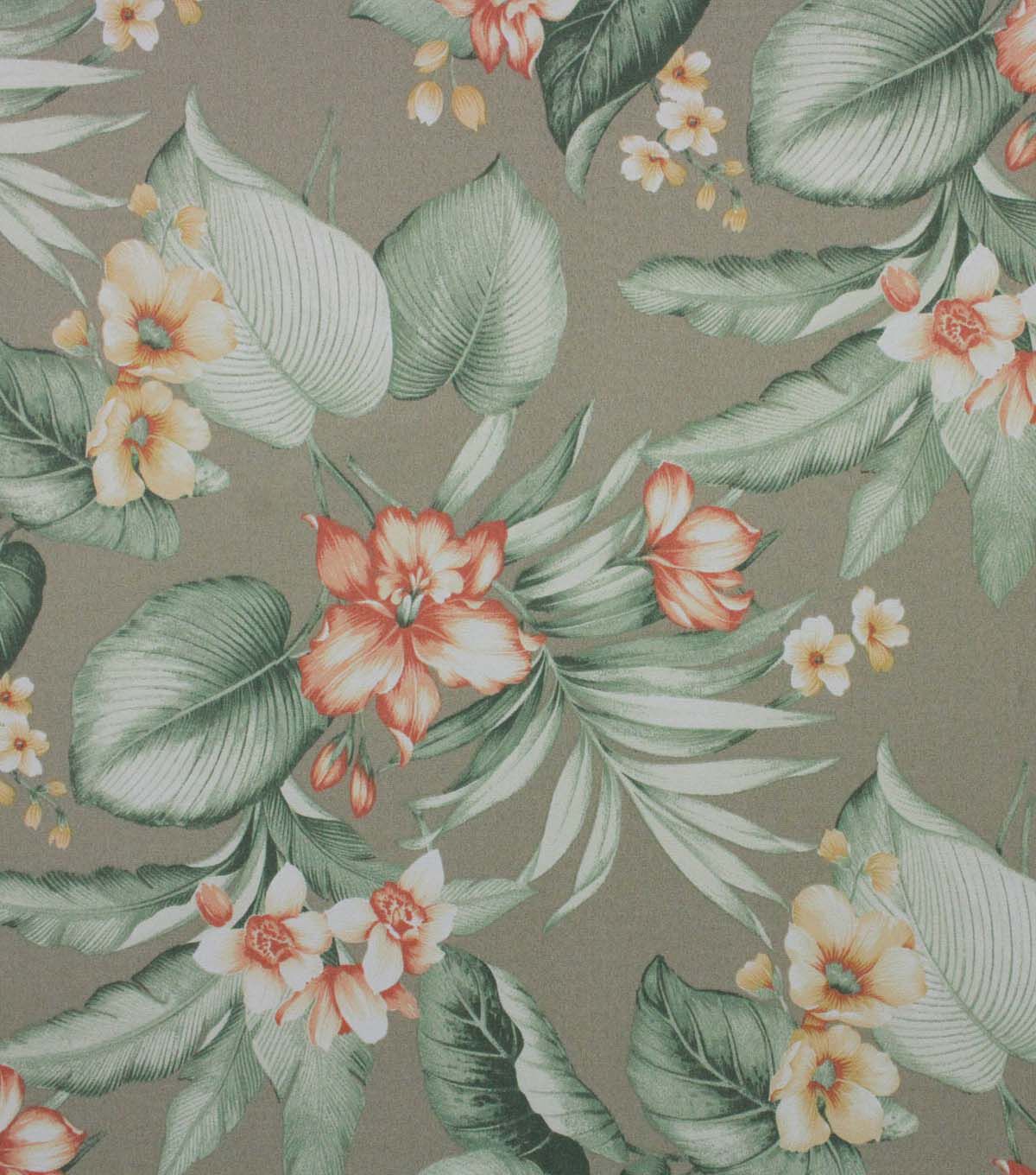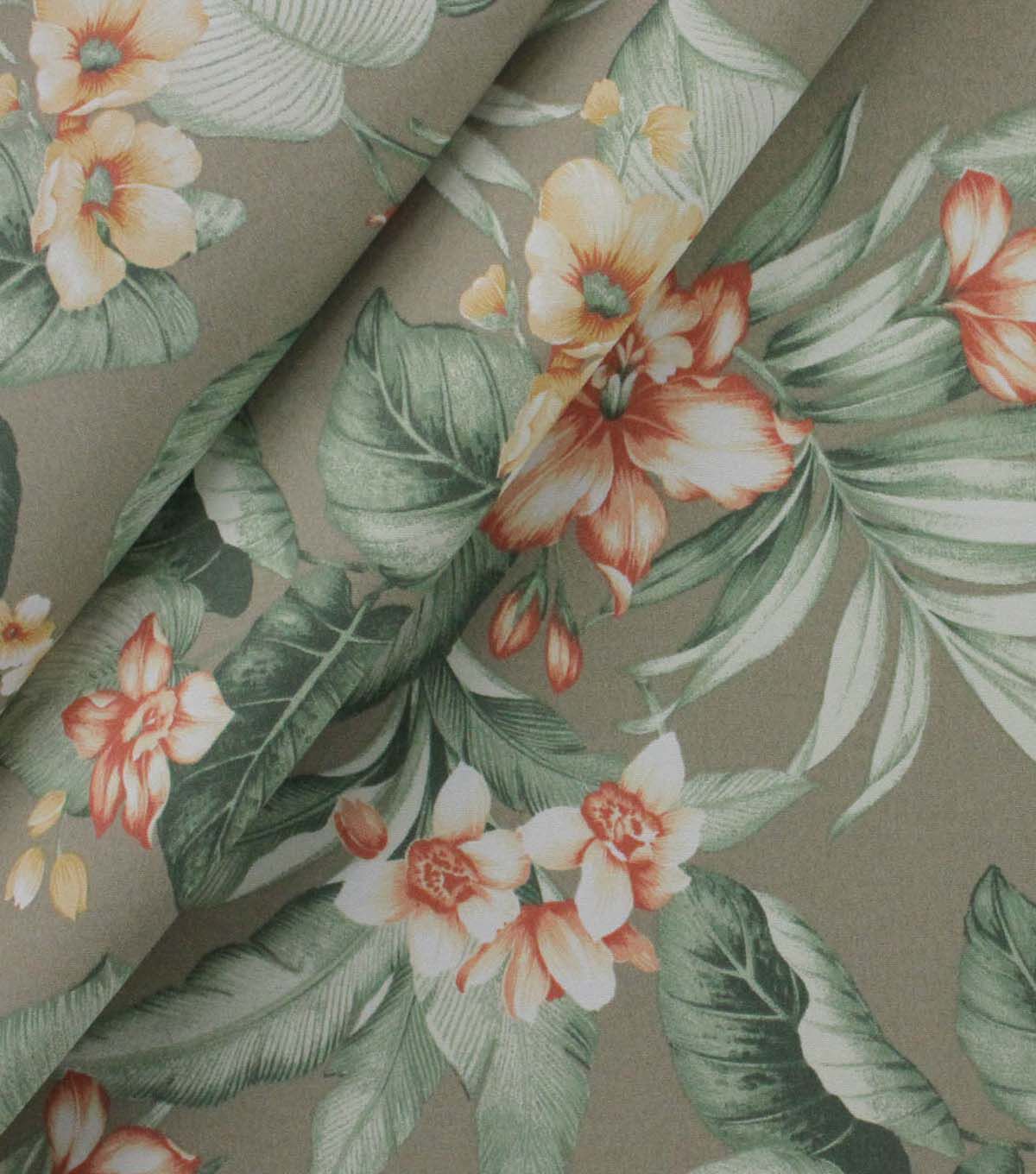 This Indoor Outdoor Printed Tropical Has An All Over Leaf Design Layered With Blooming Flowers In Neutral Tones And Pops Of Peach Colors To Enrich Your Outdoor Decor. Richloom Solarium Fabrics Have A Soft Hand, Are U/V Fade Resistant, Durable, Water Resistant, Stain Resistant And Easy To Clean With Soap And Water. Available In Beautiful Prints And Coordinated Solid Woven Textiles That Can Be Used To Decorate The Home Inside And Out