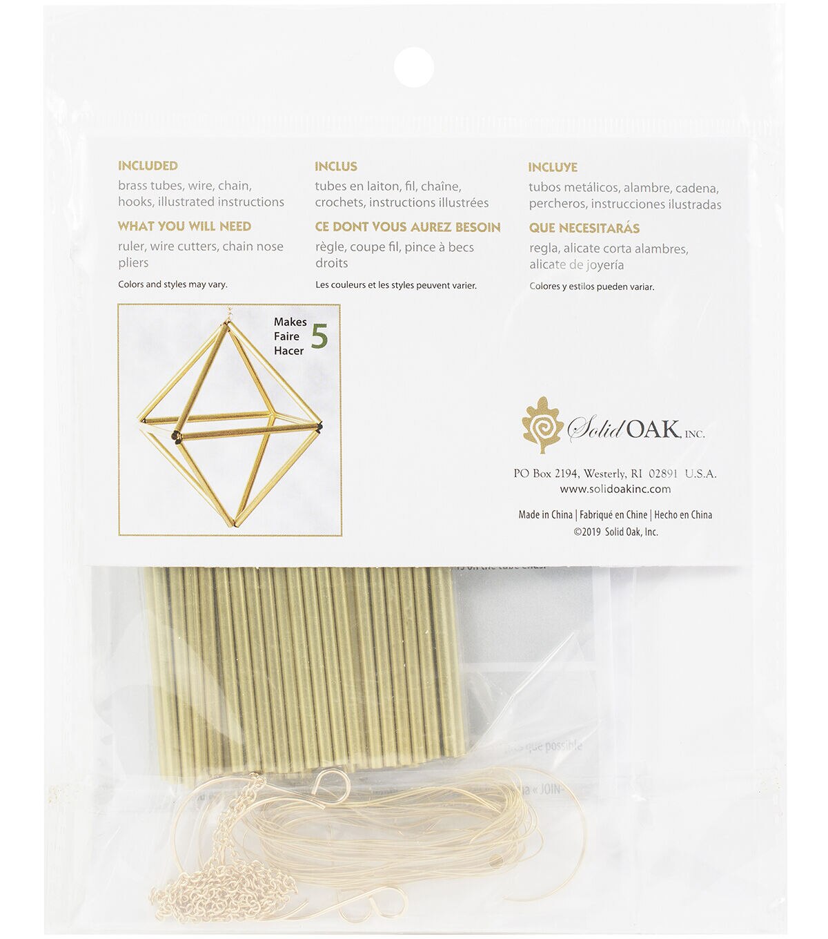 Solid Oak brings you traditional Finnish Himmeli style. Easy to make, these versatile ornaments feature the durability of raw brass for enjoyment in many years to come. They are ideal for year-round home decor, Christmas ornaments, wedding favors and gifts for any occasion. This 6x6.5 inch package contains pre-cut brass tubes, jewelry-quality wire, chain, hanger hooks and illustrated instructions. Comes in a variety of designs. Each sold separately. Imported.
