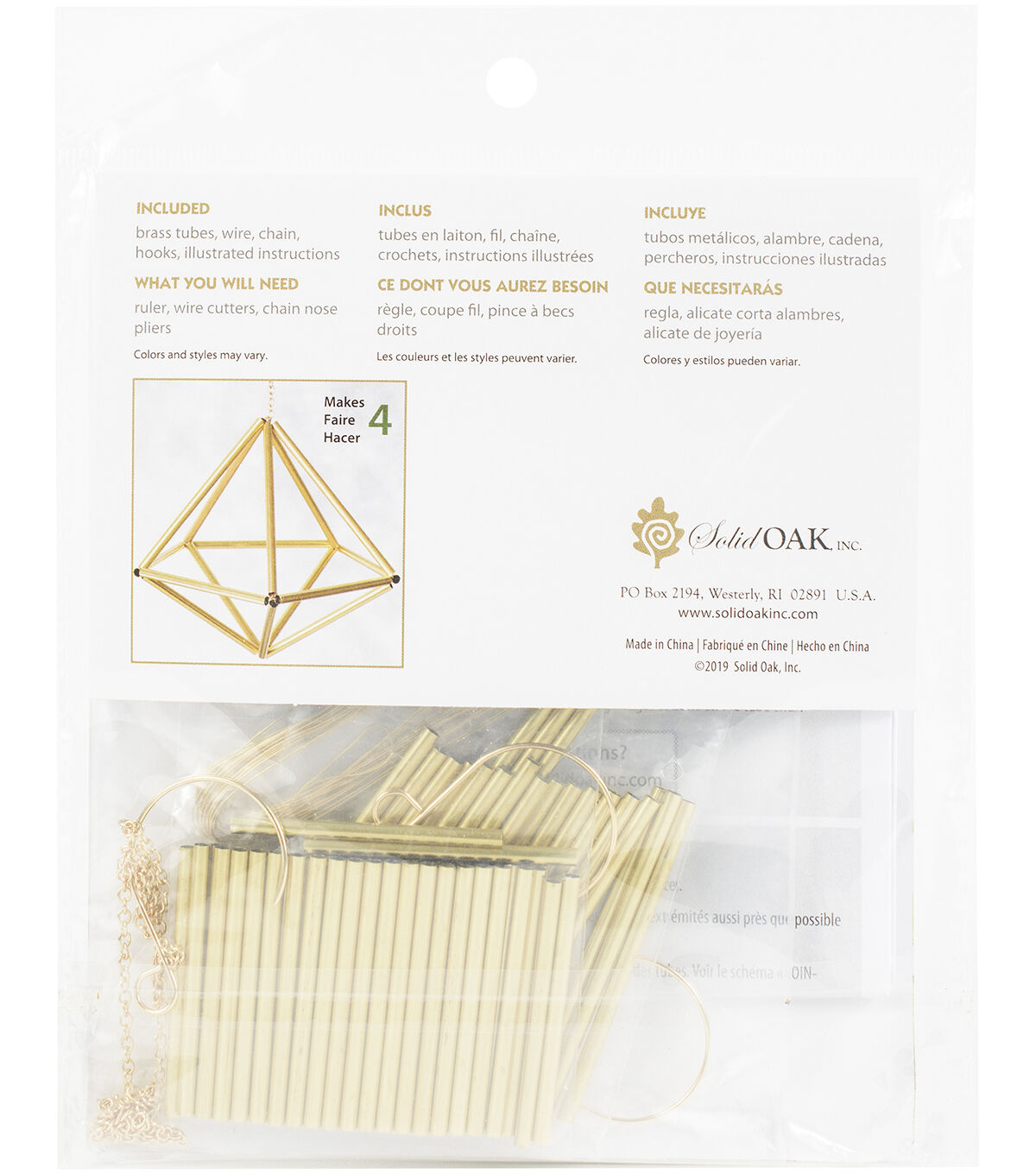 Solid Oak brings you traditional Finnish Himmeli style. Easy to make, these versatile ornaments feature the durability of raw brass for enjoyment in many years to come. They are ideal for year-round home decor, Christmas ornaments, wedding favors and gifts for any occasion. This 6x6.5 inch package contains pre-cut brass tubes, jewelry-quality wire, chain, hanger hooks and illustrated instructions. Comes in a variety of designs. Each sold separately. Imported.