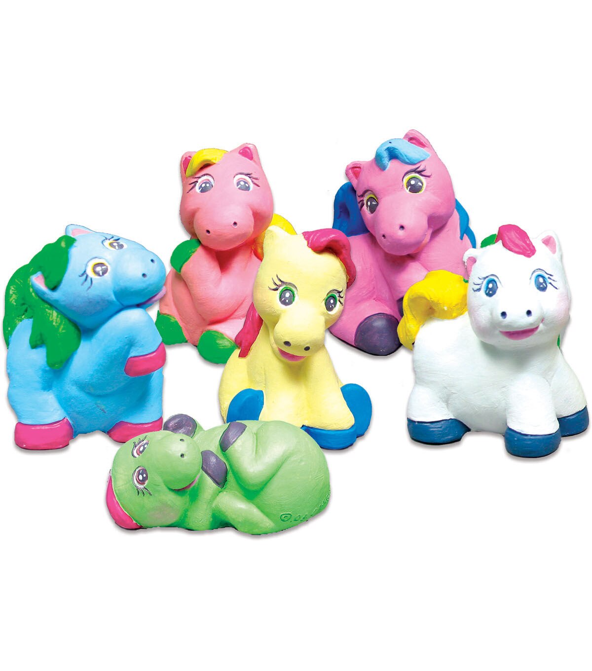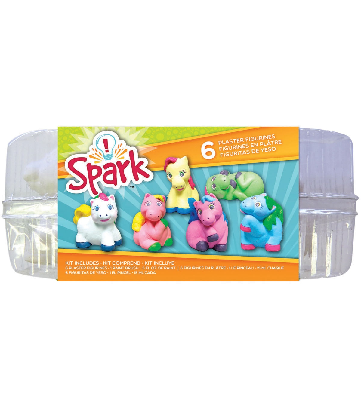 Paint some color into your life with Spark Ponies Plaster Figurines! This 6x2x4.75 inch package contains six plaster figurines, one paint brush and 0.5oz of paint. Conforms to ASTM D 4236. Imported.