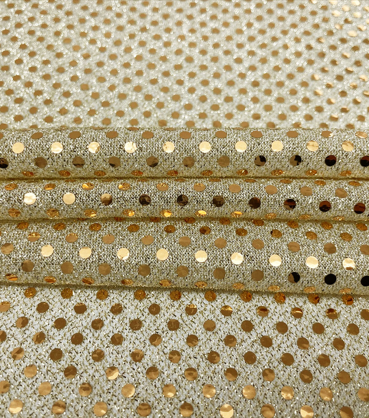 Special Occasion Fabric Confetti Dot is a standout choice for those looking to create a statement piece. Often sought-after for dance wear, formal skirts, elegant gowns, and fashion-forward accessories like scarves and belts, its confetti design is perfect for adding a touch of luxury. Measuring at 43 inches in width, this high-quality apparel fabric boasts a durable blend of 83% nylon and 17% shimmering metallic. Its versatile design palette includes a plethora of sleek metallic shades, making it your go-to fabric for any occasion that demands glamour and shine. Sold by the yard, this fabric promises endless creativity. Dive into the world of design with this confetti dot fabric and let your imagination sparkle!