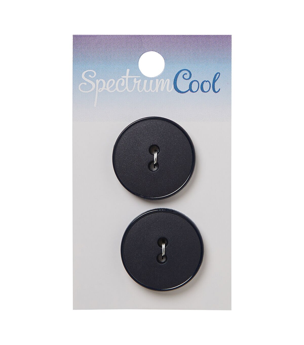 The Spectrum Cool Navy Blue Round 2 Hole Buttons are an essential addition to your sewing supplies. These buttons are perfect to replace broken buttons in shirts and polo t-shirts. You can also mix and match them with other colorful buttons, sold separately, to make visually appealing art and craft projects. This pack contains two sew-through buttons in a navy blue shade.