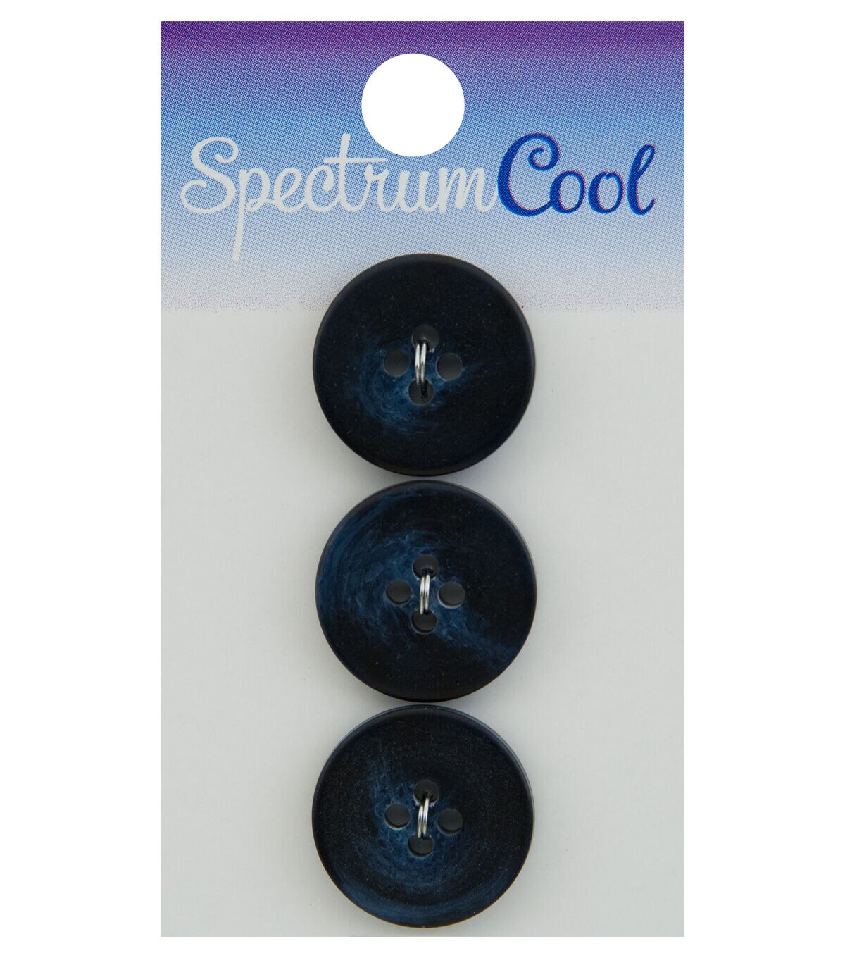 Lend a unique and attractive touch to your apparel and home decor creations using the Spectrum Cool Round Buttons Navy. These round buttons in a navy blue hue will look great on a jacket, coat, handmade sweater and more. You can also use them to perk up the look of your pillow covers. This pack comes with three buttons.