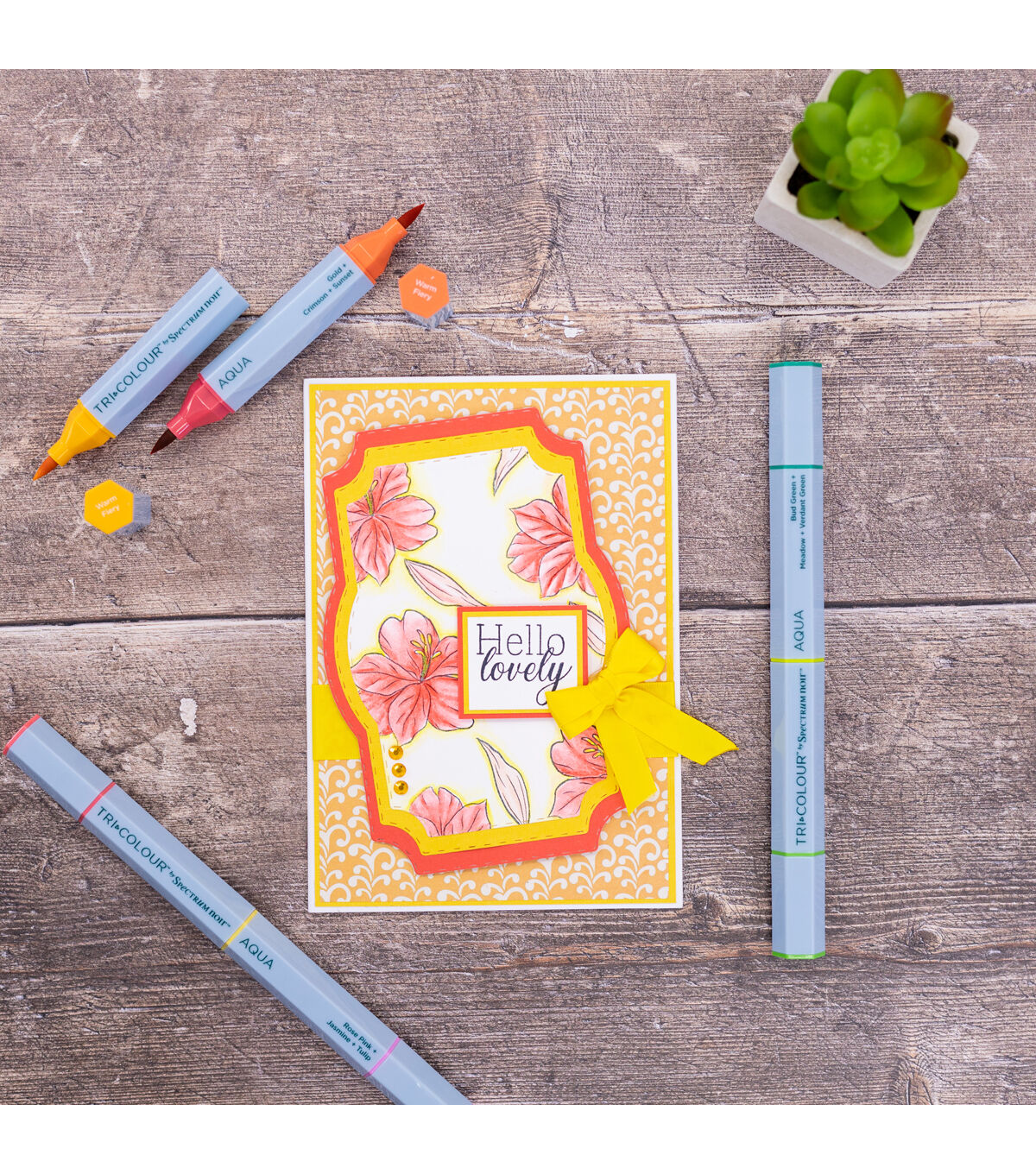 Dip a toe into the world of watercolour and enjoy portable painterly effects with these brush-tipped TriColour Aqua Markers. An easy and accessible way to begin your watercolour journey, each 3-in-1 pen holds a trio of water-soluble colours to mix and blend effortlessly to create beautiful artwork. The TriColour Markers are a brand-new concept, every pen contains a mini palette of expertly curated colour-schemes that complement one another perfectly! These versatile palettes can be enjoyed individually or mixed and combined with other colours in the set for endless variety. The watercolour effects of these pens offer a great way to try out new techniques, from creating blended and diffused stamped images to subtle blended background washes. And whether you’re an experienced colourist or a beginner we’re sure you’ll enjoy the space-saving convenience of having three colours in one pen. Switching from one colour to the next becomes effortless and now you can carry just one pen instead of three. Perfect for colouring on the move!