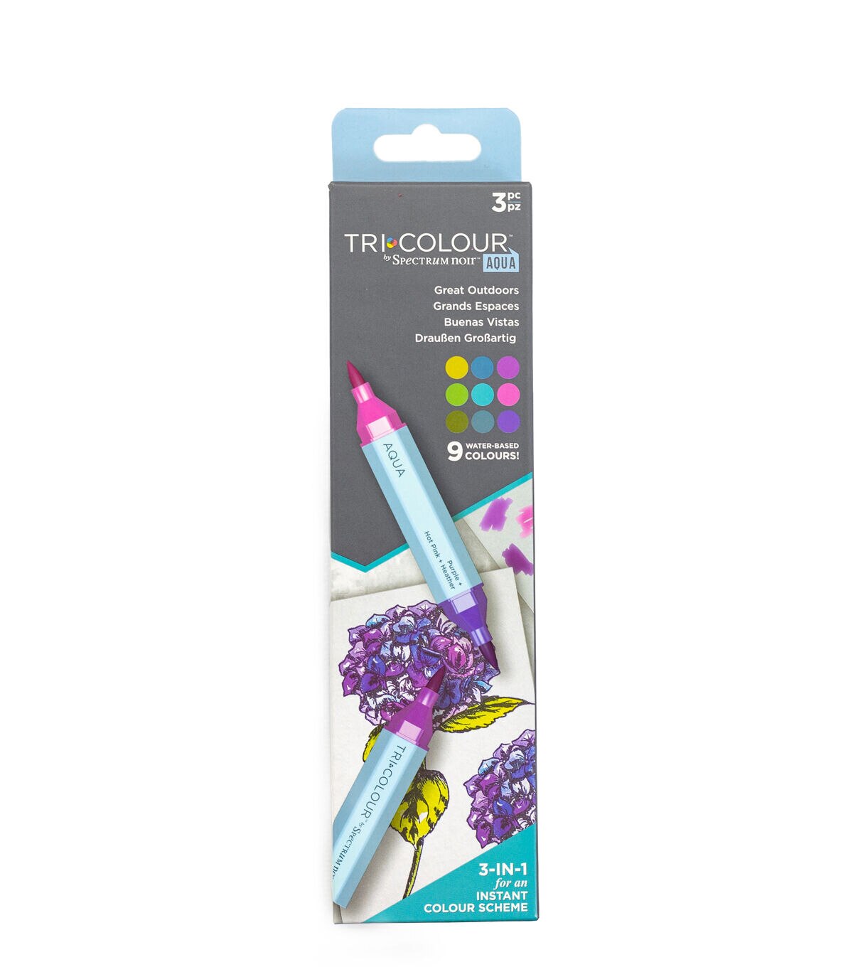 Dip a toe into the world of watercolour and enjoy portable painterly effects with these brush-tipped TriColour Aqua Markers. An easy and accessible way to begin your watercolour journey, each 3-in-1 pen holds a trio of water-soluble colours to mix and blend effortlessly to create beautiful artwork. The TriColour Markers are a brand-new concept, every pen contains a mini palette of expertly curated colour-schemes that complement one another perfectly! These versatile palettes can be enjoyed individually or mixed and combined with other colours in the set for endless variety. The watercolour effects of these pens offer a great way to try out new techniques, from creating blended and diffused stamped images to subtle blended background washes. And whether you’re an experienced colourist or a beginner we’re sure you’ll enjoy the space-saving convenience of having three colours in one pen. Switching from one colour to the next becomes effortless and now you can carry just one pen instead of three. Perfect for colouring on the move!