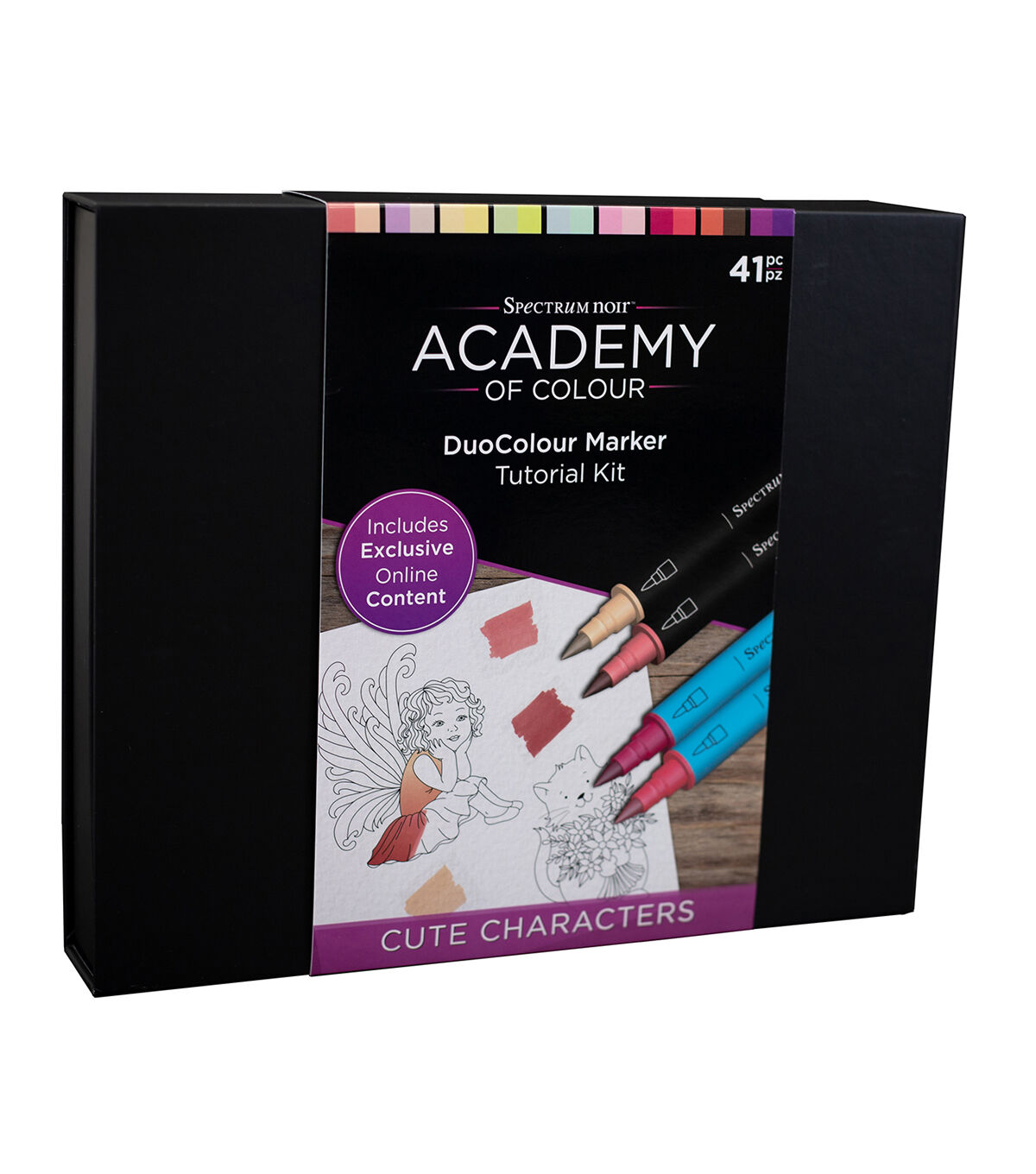 Welcome to the Spectrum Noir Academy of Colour! With premium art supplies and exclusive online tutorials, you can unlock new art skills, techniques, and effects. Inside the box you’ll find a full rainbow of Spectrum Noir DuoColour Alcohol and Aqua Markers, lined up and ready to take you on a journey of discovery. Designed to perfectly complement and improve the skills of novice and experienced colourists alike, paintbrushes, a spritzer, blending palette, specialist marker paper and more will invite you to explore, experiment and uncover newfound creativity!