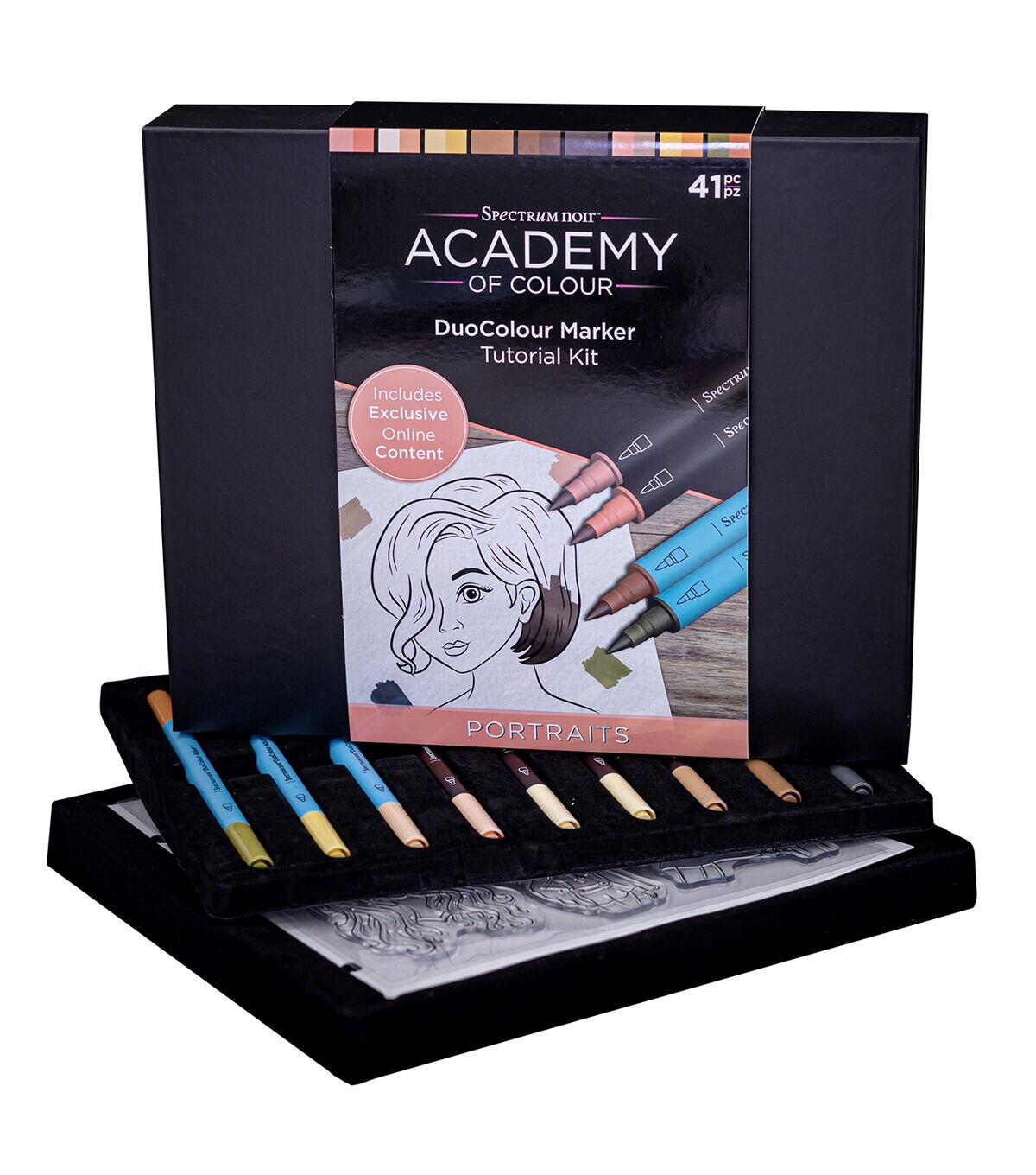 Welcome to the Spectrum Noir Academy of Colour! With premium art supplies and exclusive online tutorials, you can unlock new art skills, techniques, and effects. Inside the box you’ll find a full rainbow of Spectrum Noir DuoColour Alcohol and Aqua Markers, lined up and ready to take you on a journey of discovery. Designed to perfectly complement and improve the skills of novice and experienced colourists alike, paintbrushes, a spritzer, blending palette, specialist marker paper and more will invite you to explore, experiment and uncover newfound creativity!