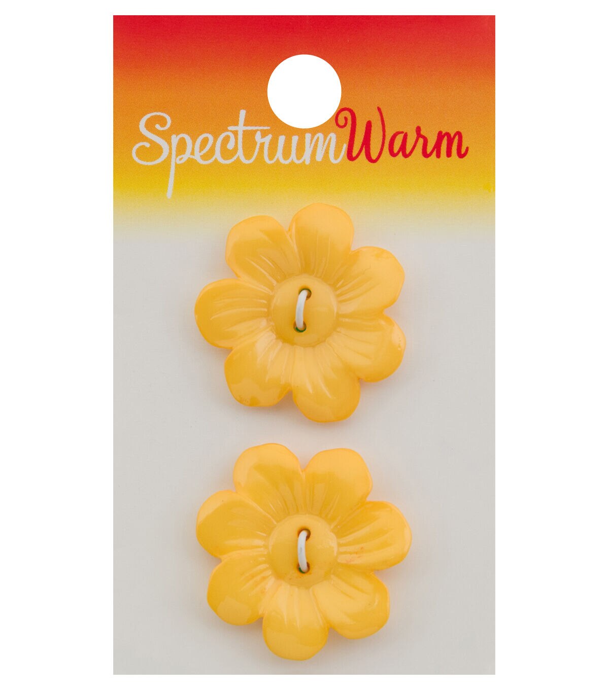 Prettify your handmade creations using the Spectrum Warm Shiny Daisy Buttons Yellow. This pack includes two buttons shaped like daisies and will make a lovely addition to floral-printed DIY dresses, tops, skirts and more. You can use them as fasteners or for decorative purposes. These buttons can also be stitched onto fabric dolls. Brand: Spectrum Warm Collection: Apparel Buttons,Novelty Buttons Includes two buttons Size: 28 millimeter
